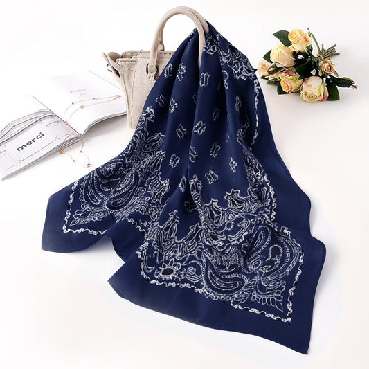 Foulard carré toucher soie Couture Paisley Bleu marine 70x70cm