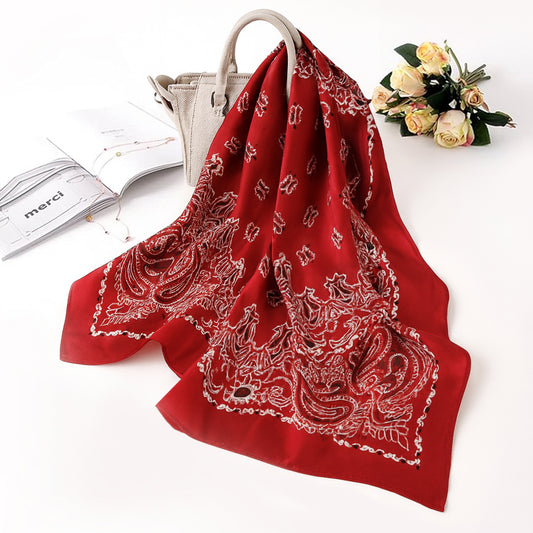Foulard carré toucher soie Couture Paisley Grenat 70x70cm