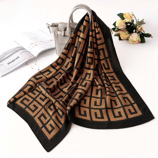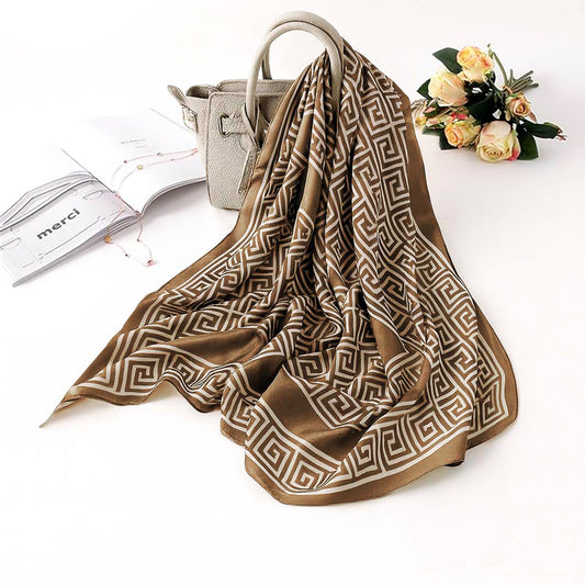 Foulard carré toucher soie Brown Santorini 70x70cm