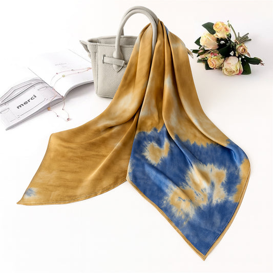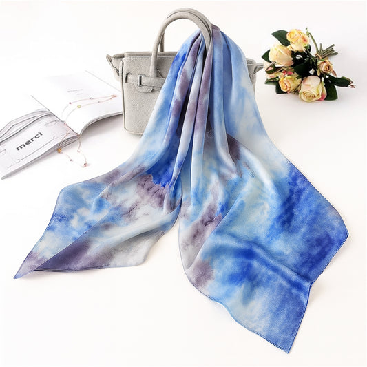 Foulard carré toucher soie tie dye Blue Sky 70x70cm
