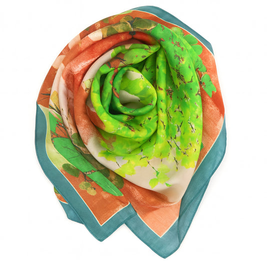Foulard carré toucher soie Fleur de Sésame 70x70cm