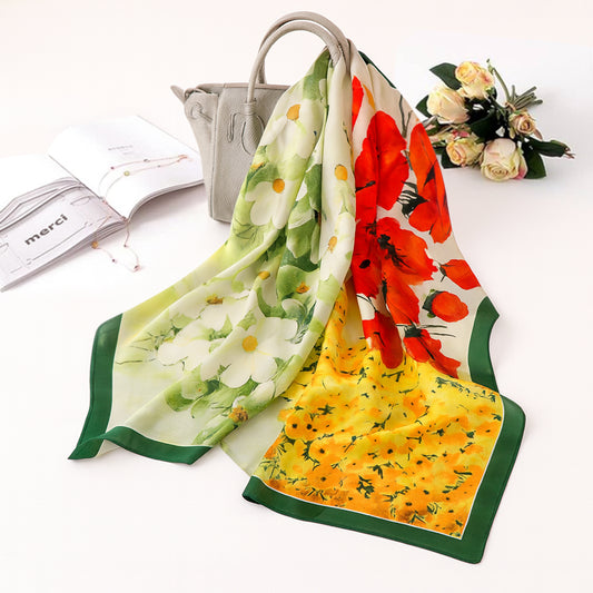 Foulard carré toucher soie floral Éclat d'Anémone 70x70cm