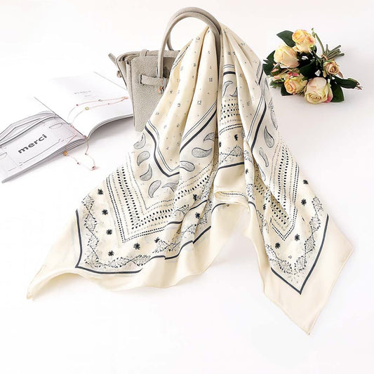 Foulard bandana carré toucher soie Blanc Vintage 70x70cm
