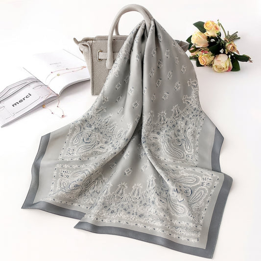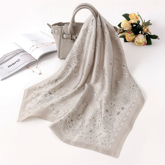 Foulard carré toucher soie Couture Paisley Gris perle 70x70cm