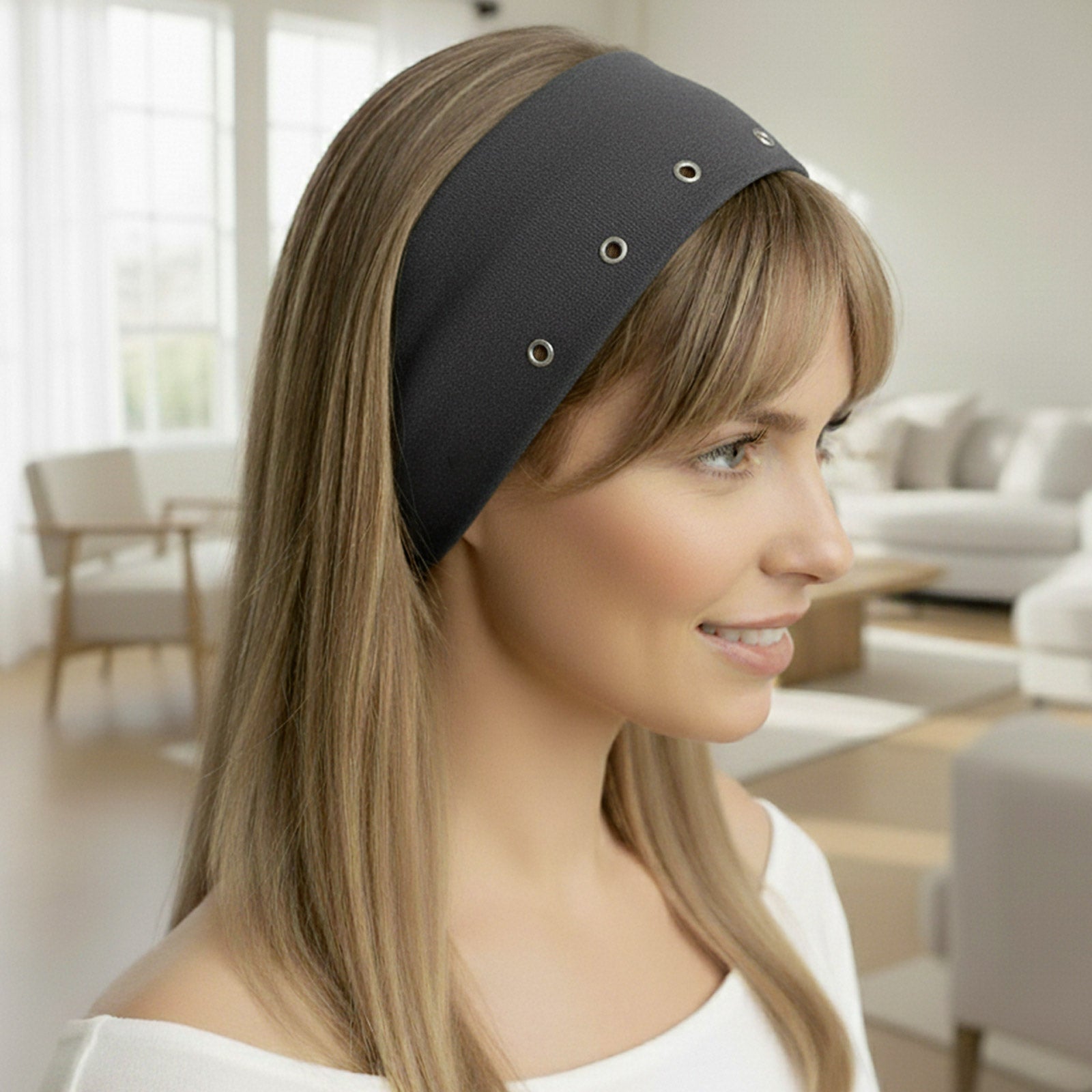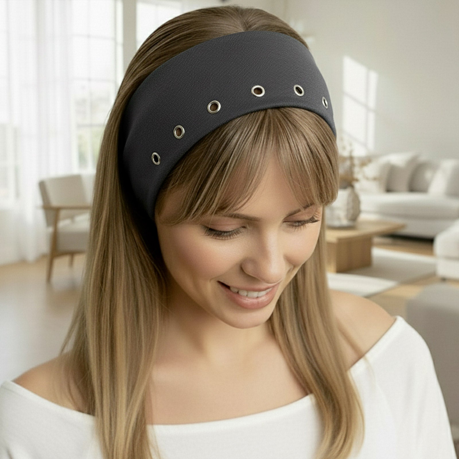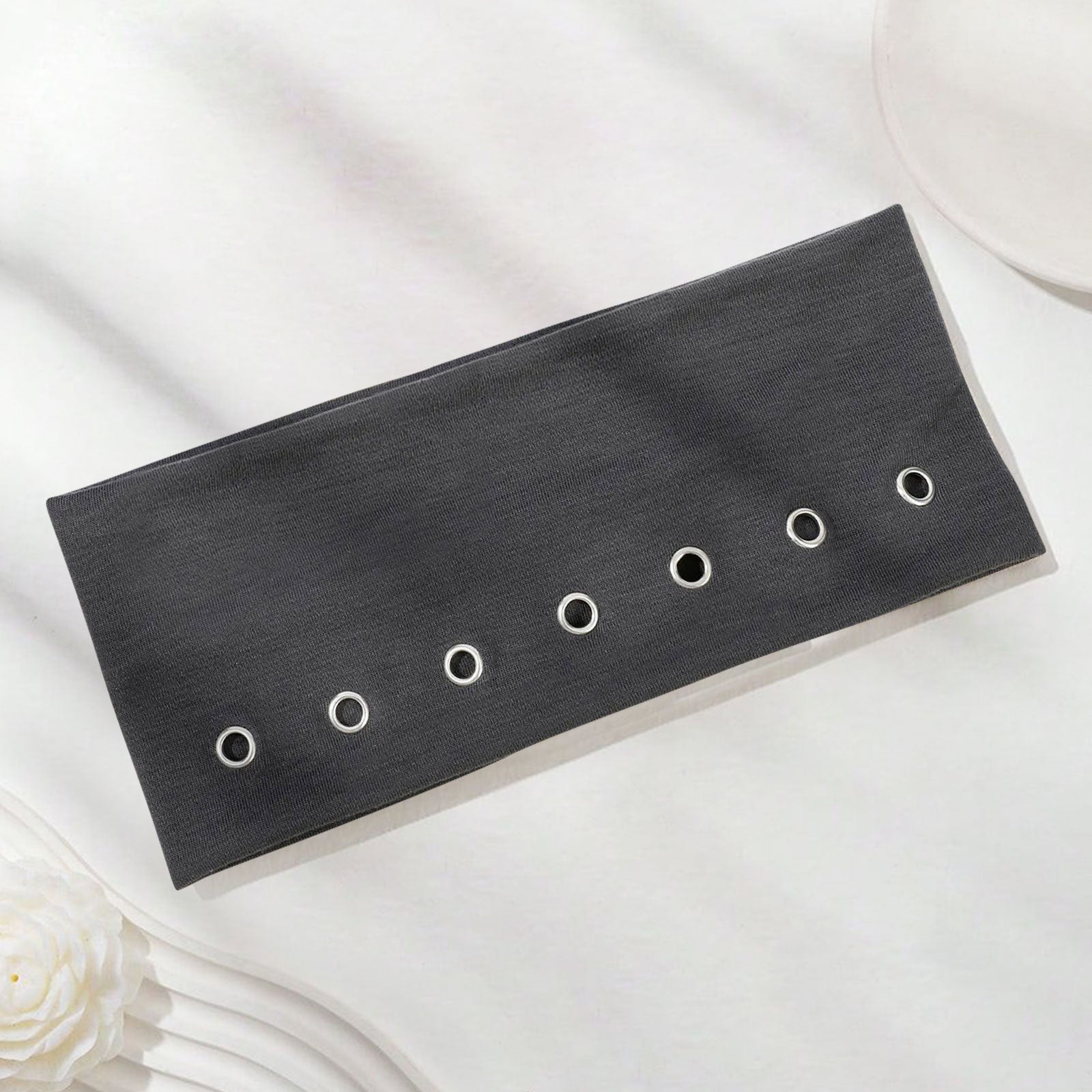 Bandeau Large à Œillets Métalliques Lexie en Coton Gris