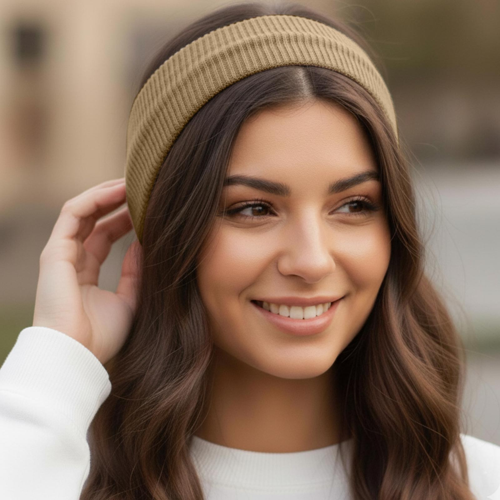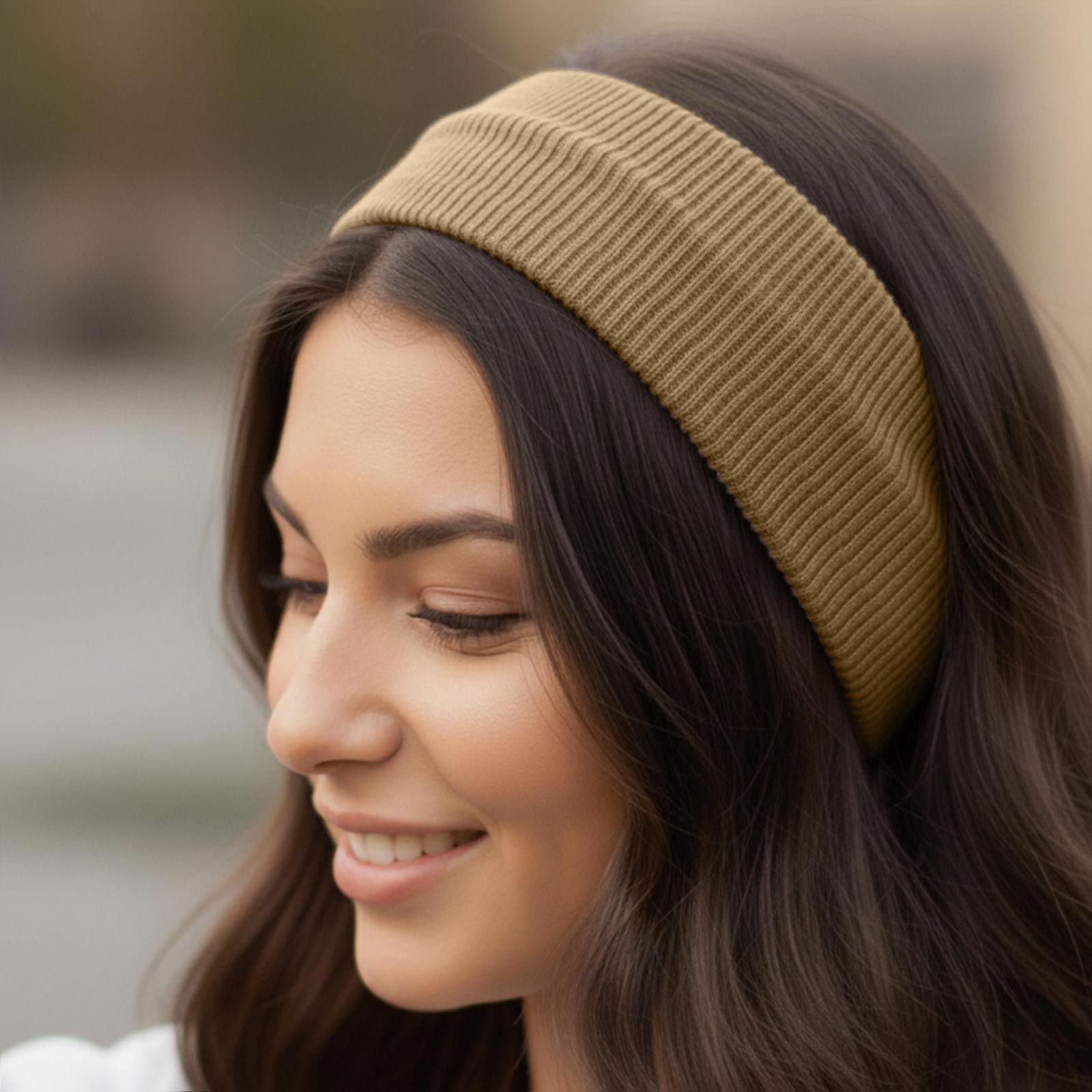 Bandeau Large Côtelé Mila en Coton Beige Kaki