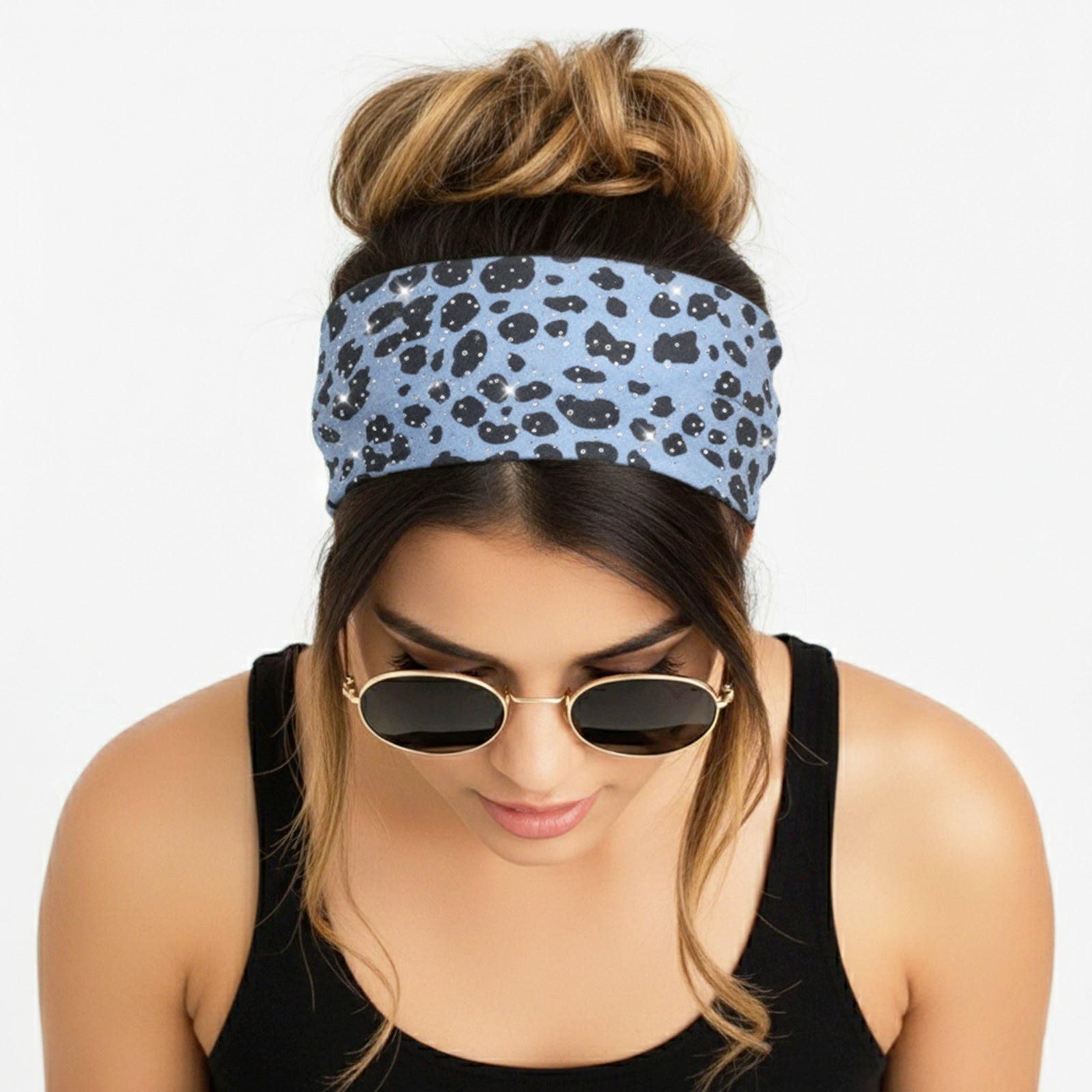 Bandeau Large Léopard Strassé Chloé en Coton Bleu