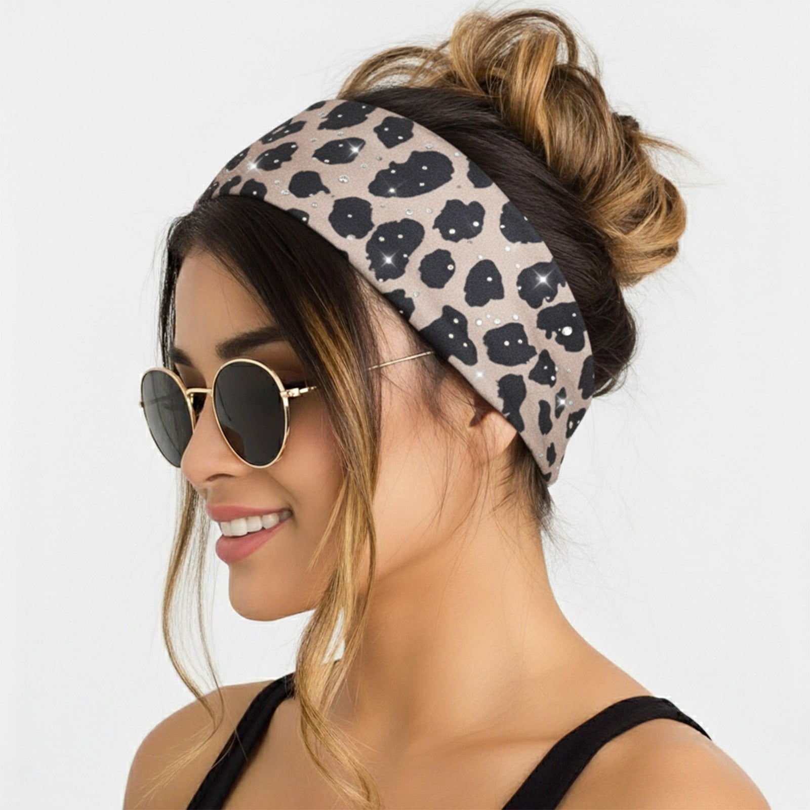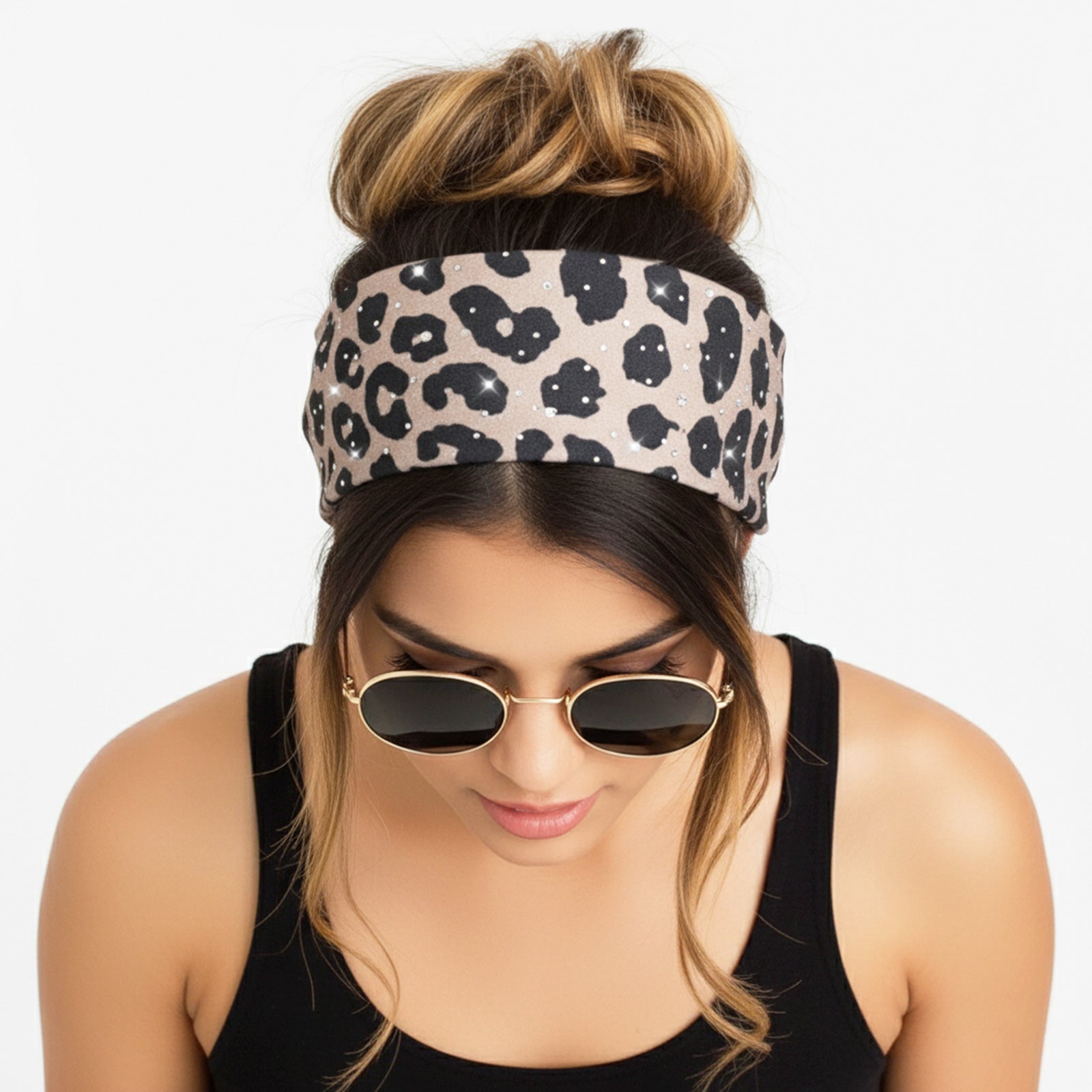 Bandeau Large Léopard Strassé Chloé en Coton Pêche