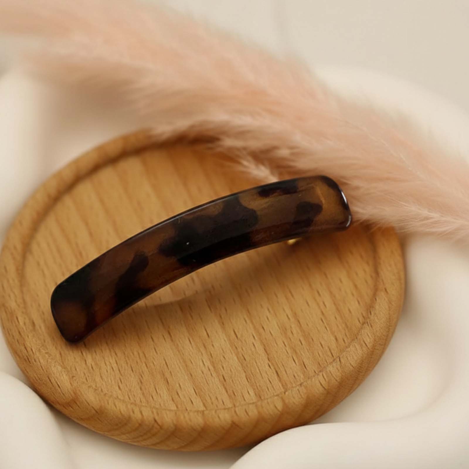 Cette barrette clip adopte une silhouette rectangulaire légèrement courbée, idéale pour structurer la coiffure avec élégance. Son motif effet écaille lui confère un charme intemporel et une touche subtilement vintage.
