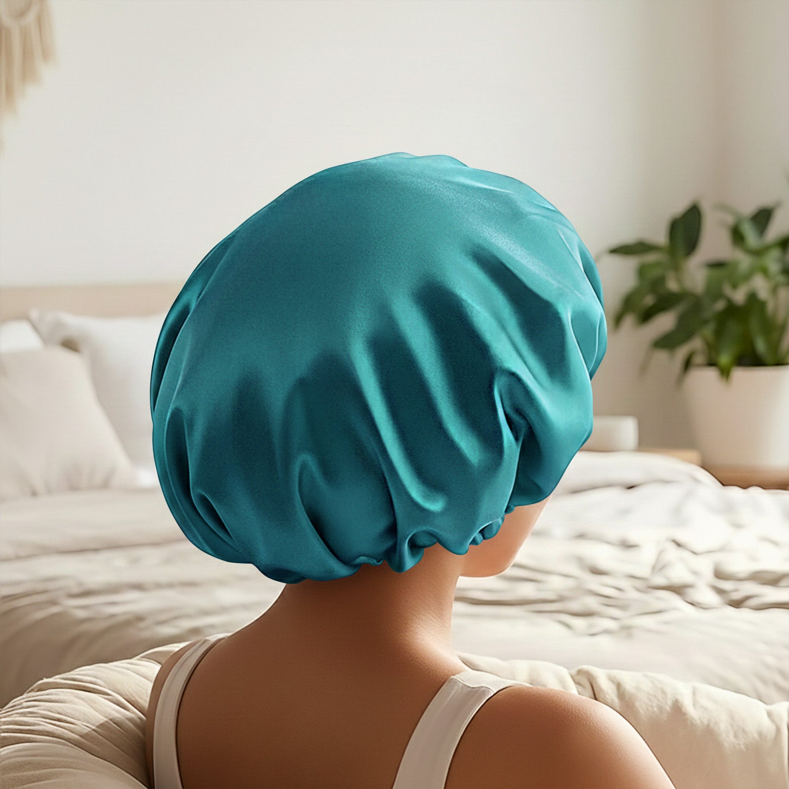 Bonnet de Nuit en Satin Ajustable Vert Turquoise avec Doublure
