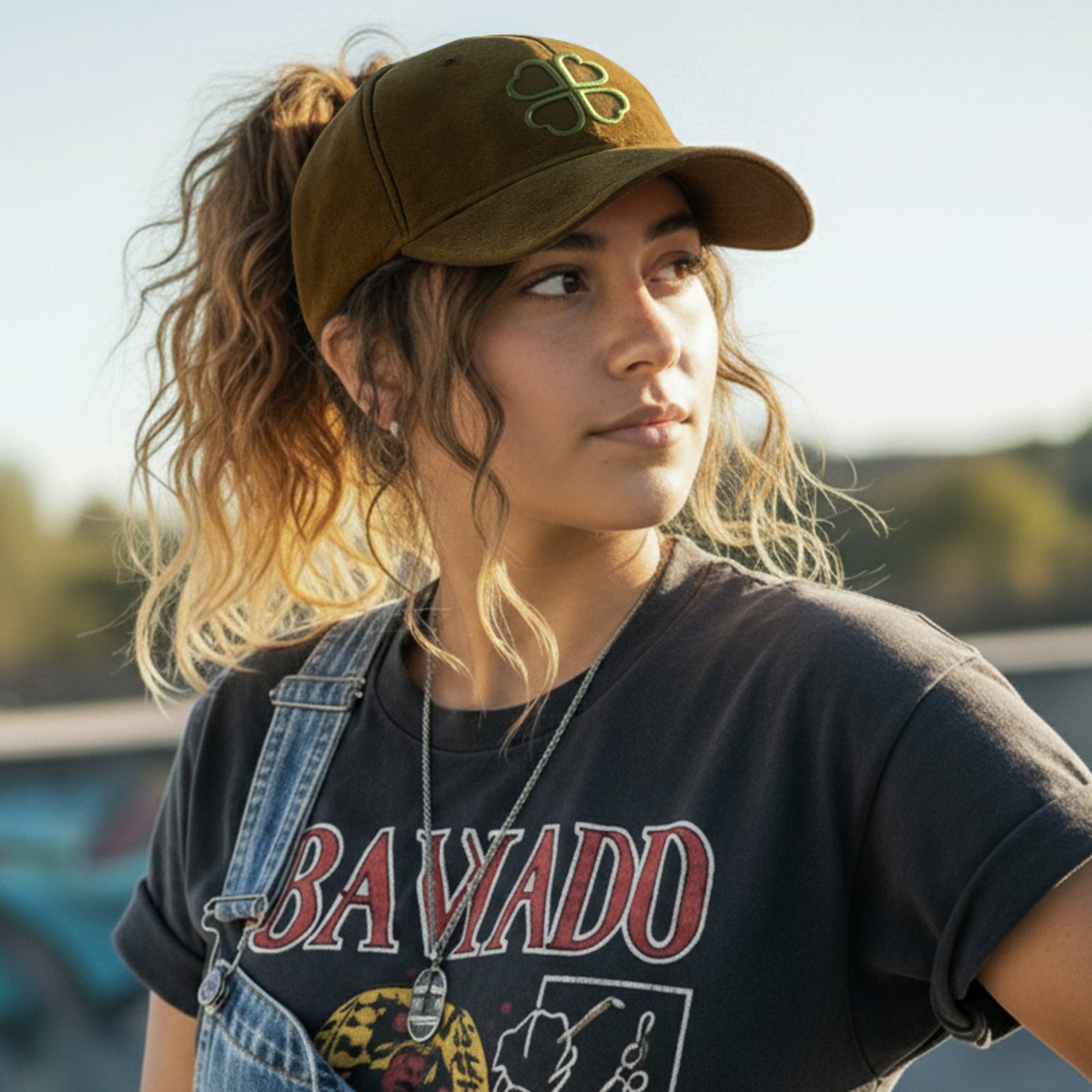 Misez sur l’originalité avec la Casquette Clover Heart Effet Daim Vert. Sa matière effet daim, douce et veloutée, apporte une touche raffinée et agréable à porter. Le vert profond et tendance fait de cette casquette un accessoire unique, idéal pour rehausser vos looks urbains ou casual.