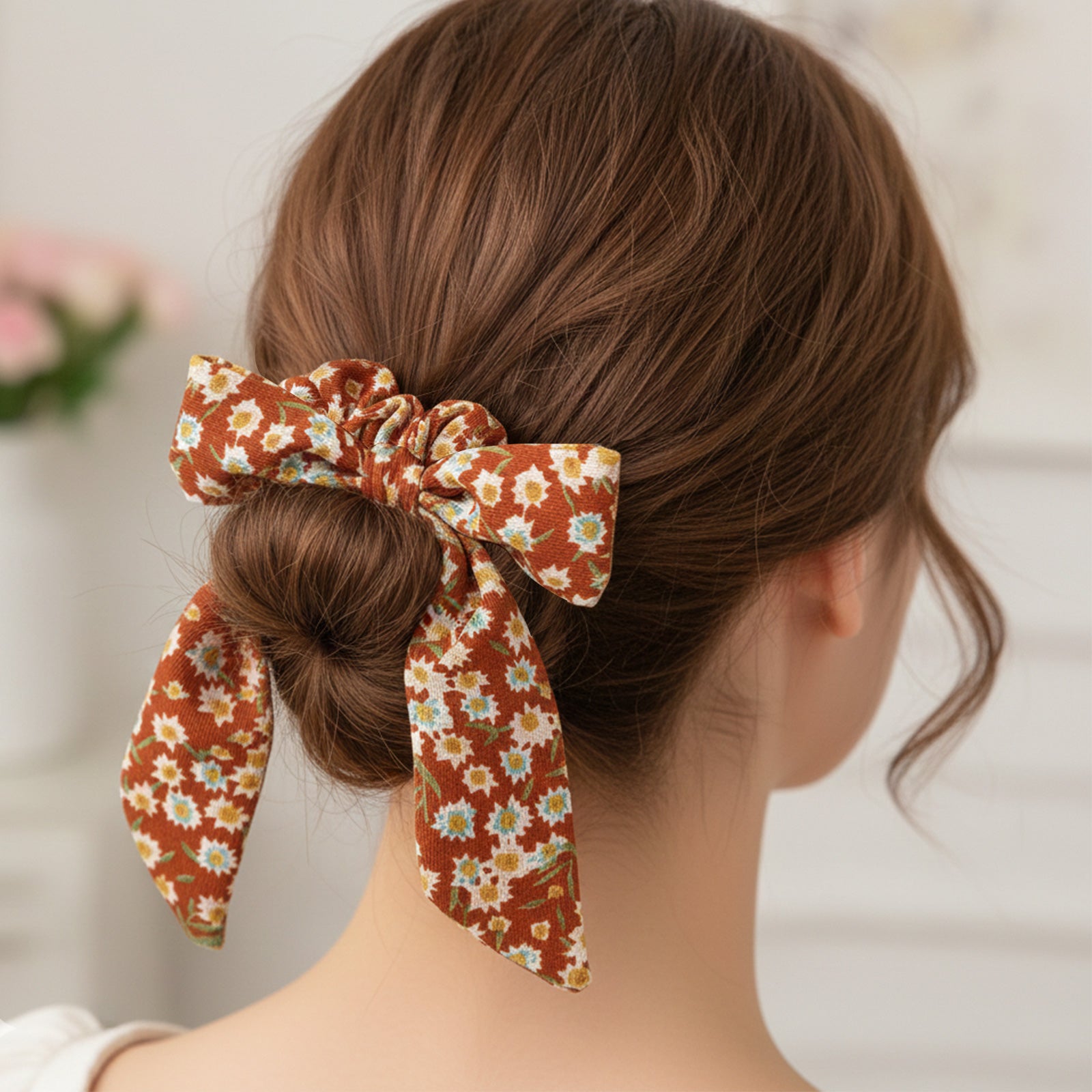Le nœud foulard donne tout de suite un peu plus de style à une queue de cheval, un chignon ou une demi-attache. Le tissu reste léger et tombe bien, ce qui permet de garder un rendu élégant même avec une coiffure simple. Le chouchou tient sans tirer, et le foulard apporte ce petit détail qui change tout.
