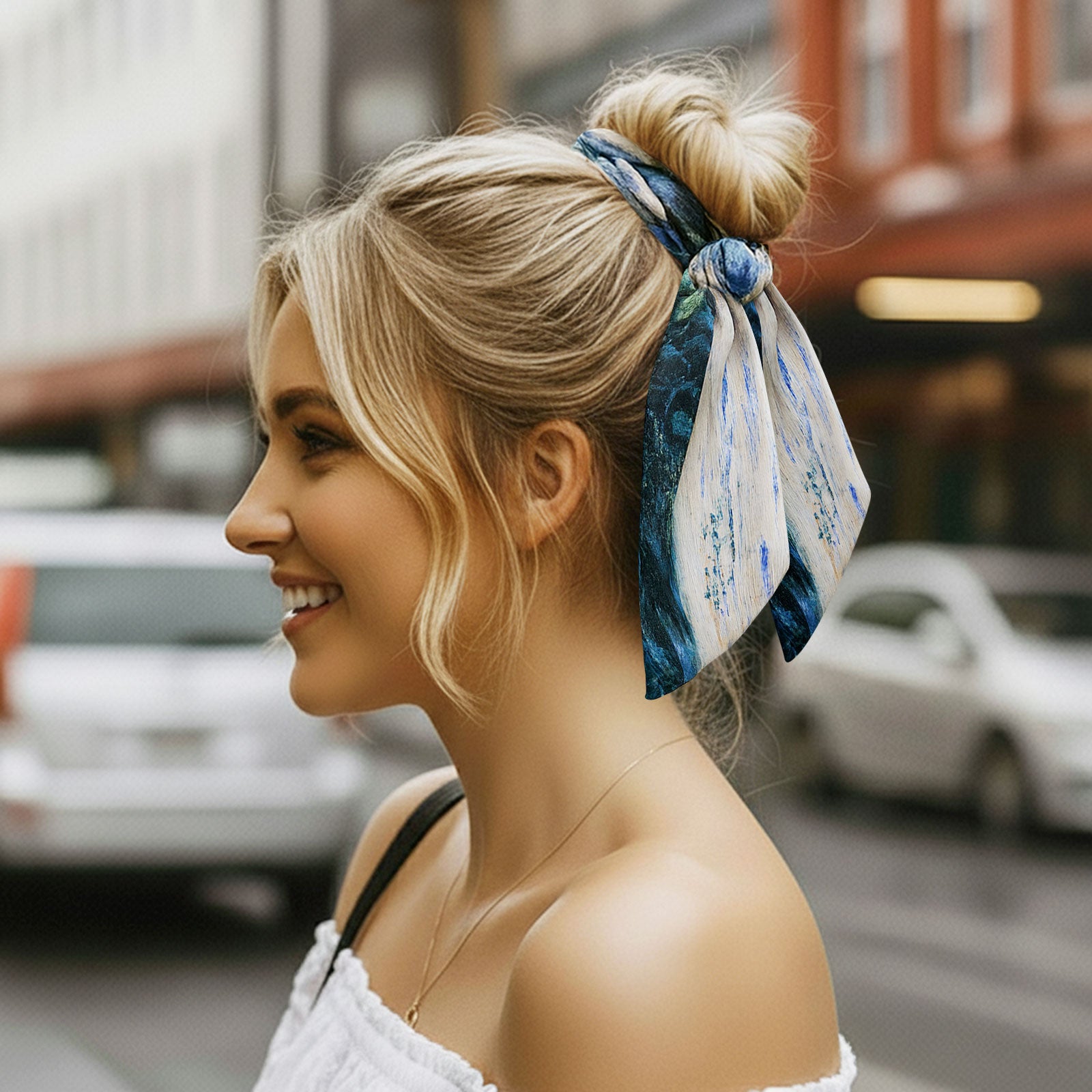 On aime leur côté léger, presque aérien, et la façon dont les rubans bougent au rythme des cheveux. Chaque imprimé raconte une ambiance : un jardin botanique, une toile peinte, une balade en bord de mer... Il y a toujours un modèle qui reflète une humeur, un moment ou une saison.