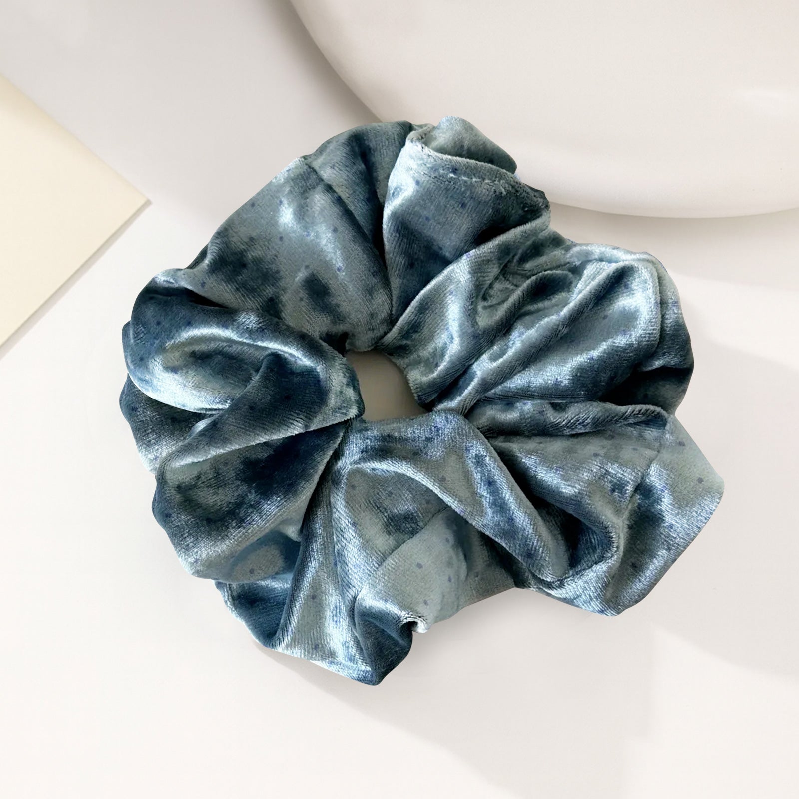 Le chouchou Morgane bleu évoque une élégance douce et décontractée. Son velours soyeux capte la lumière, tandis que ses pois discrets apportent une note espiègle et féminine. Sa taille généreuse lui permet de créer de beaux volumes dans les cheveux, que ce soit pour un chignon flou ou une queue haute.