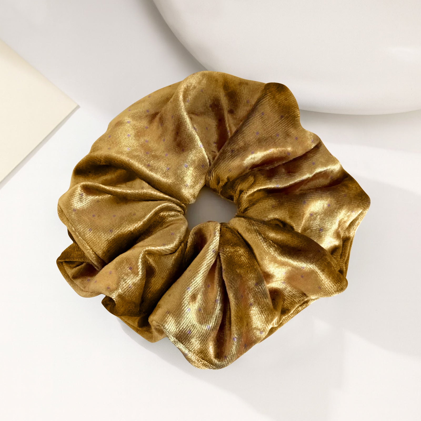 Le chouchou Morgane jaune joue avec la lumière et la bonne humeur. En velours doux et légèrement brillant, il attire le regard sans en faire trop. Ses pois contrastés ajoutent une touche rétro pleine de fraîcheur, tandis que sa taille XXL donne du volume à la coiffure avec naturel.