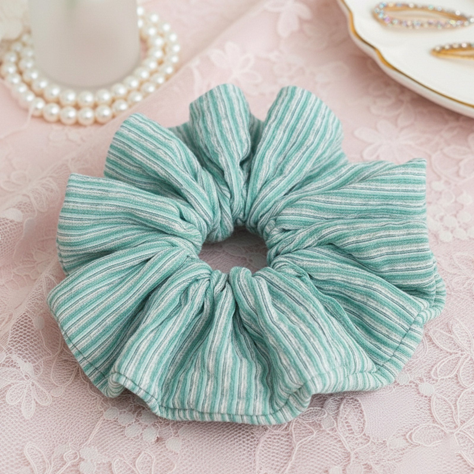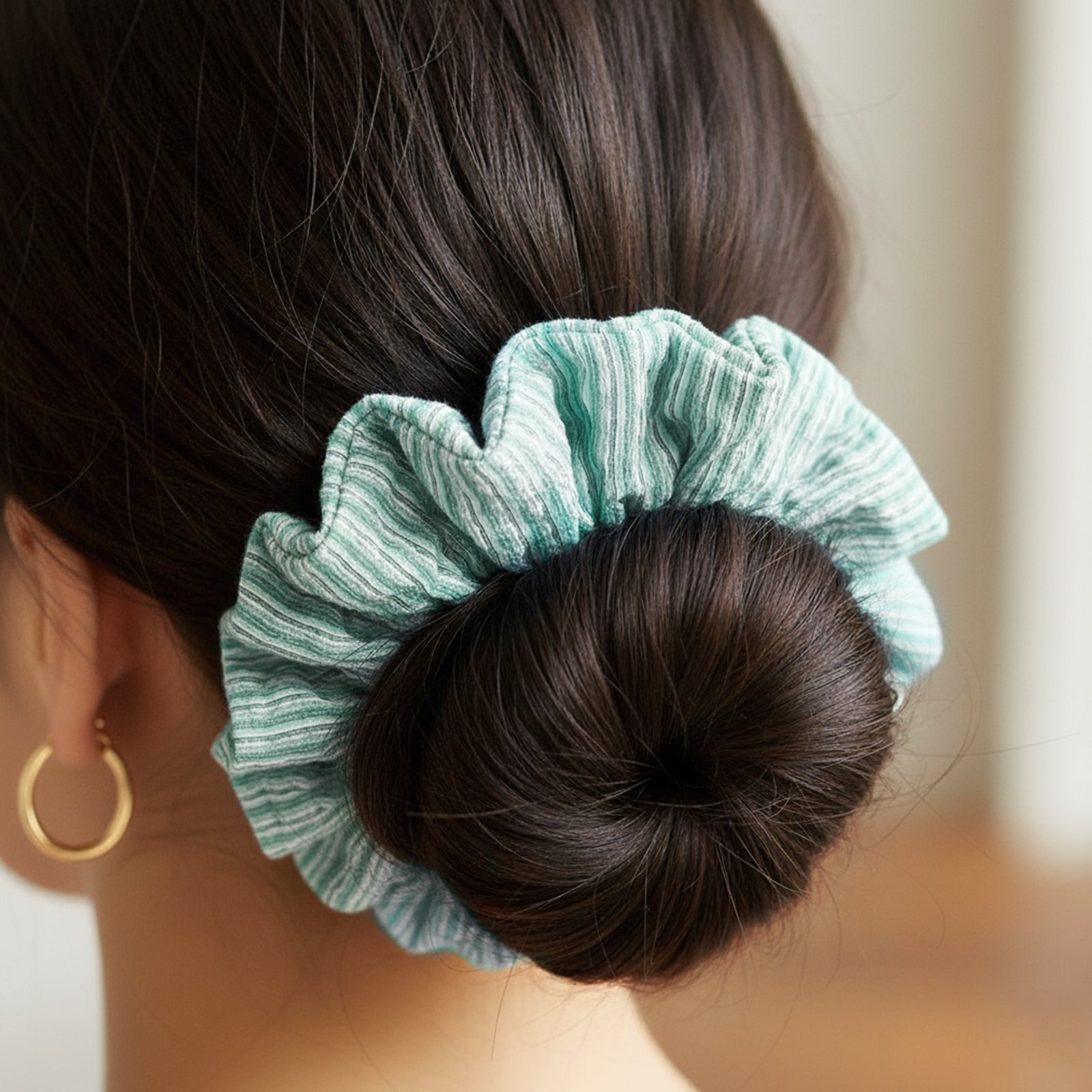 Le chouchou XXL Ally apporte une note de fraîcheur avec sa mousseline fluide et son vert menthe délicat. Léger et souple, il donne du volume sans alourdir, pour une coiffure à la fois simple et pleine de charme.