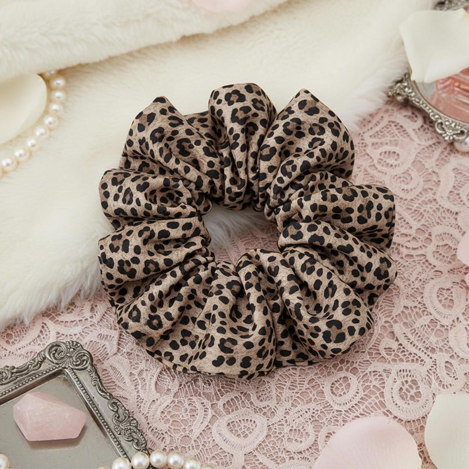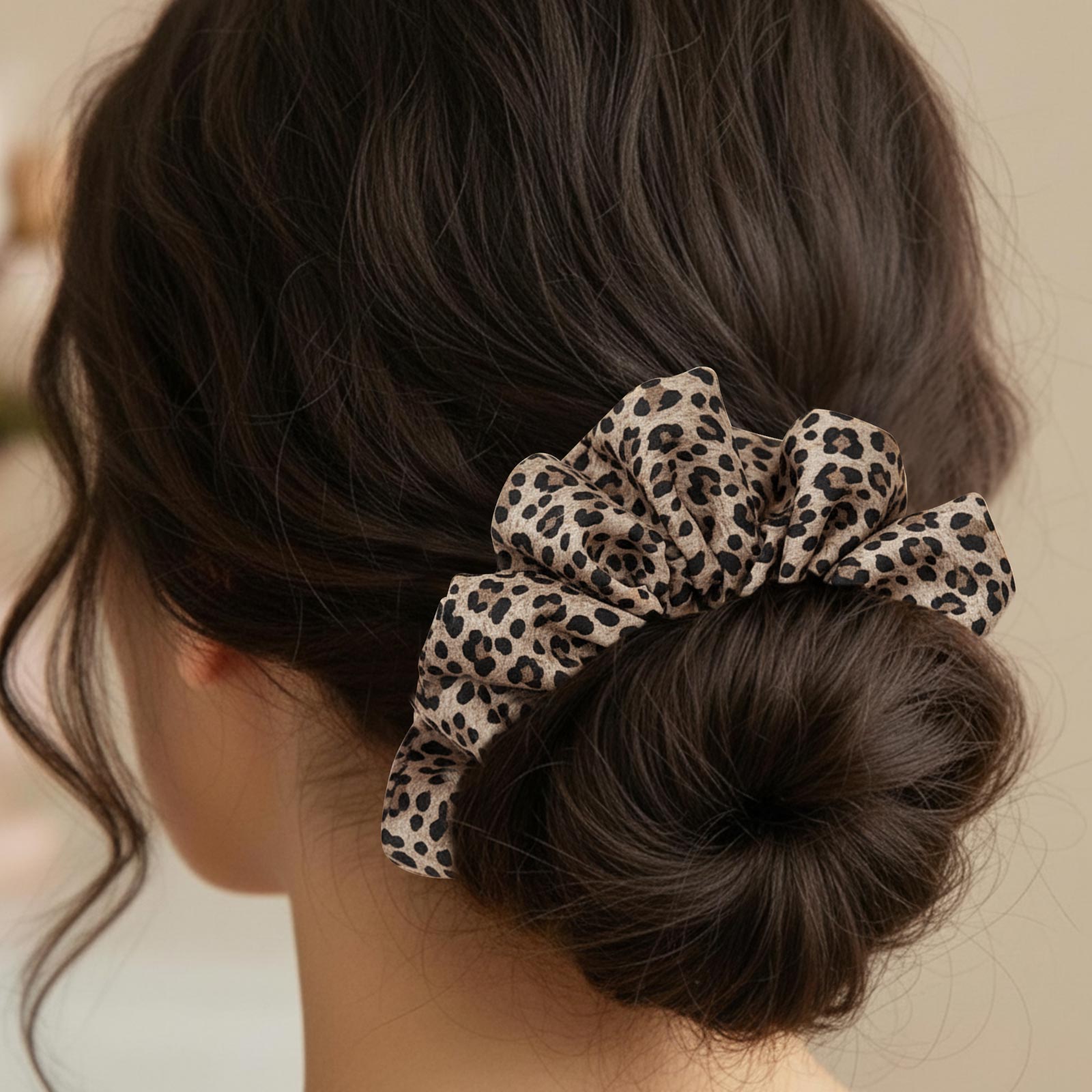Chouchou XXL Imprimé Léopard Élyna en Tissu Doux Brun