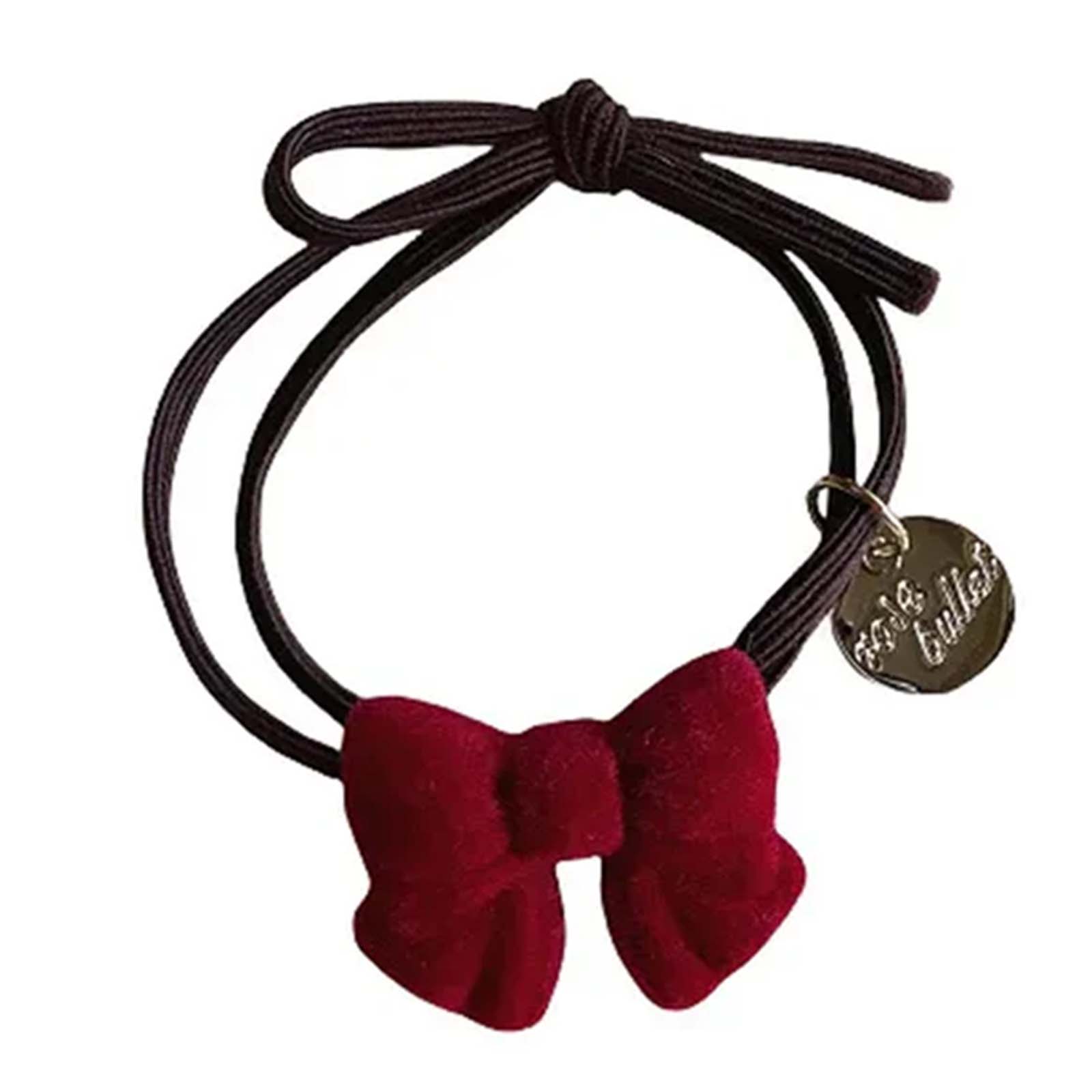 1 Élastique Casual Elise à Médaillon et Nœud en Velours Bordeaux