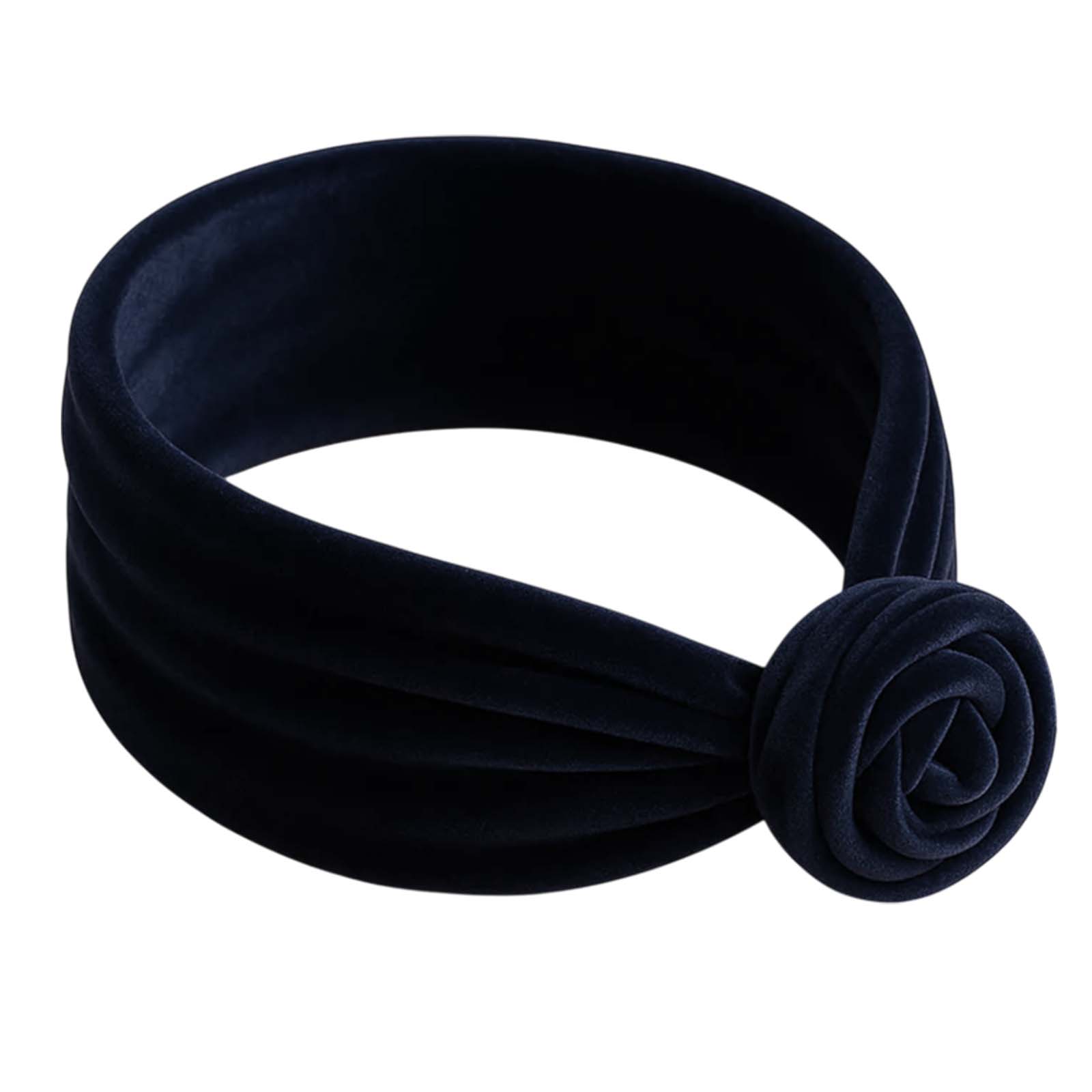 1 Bandeau Style Turban Harriet en Velours Bleu Marine