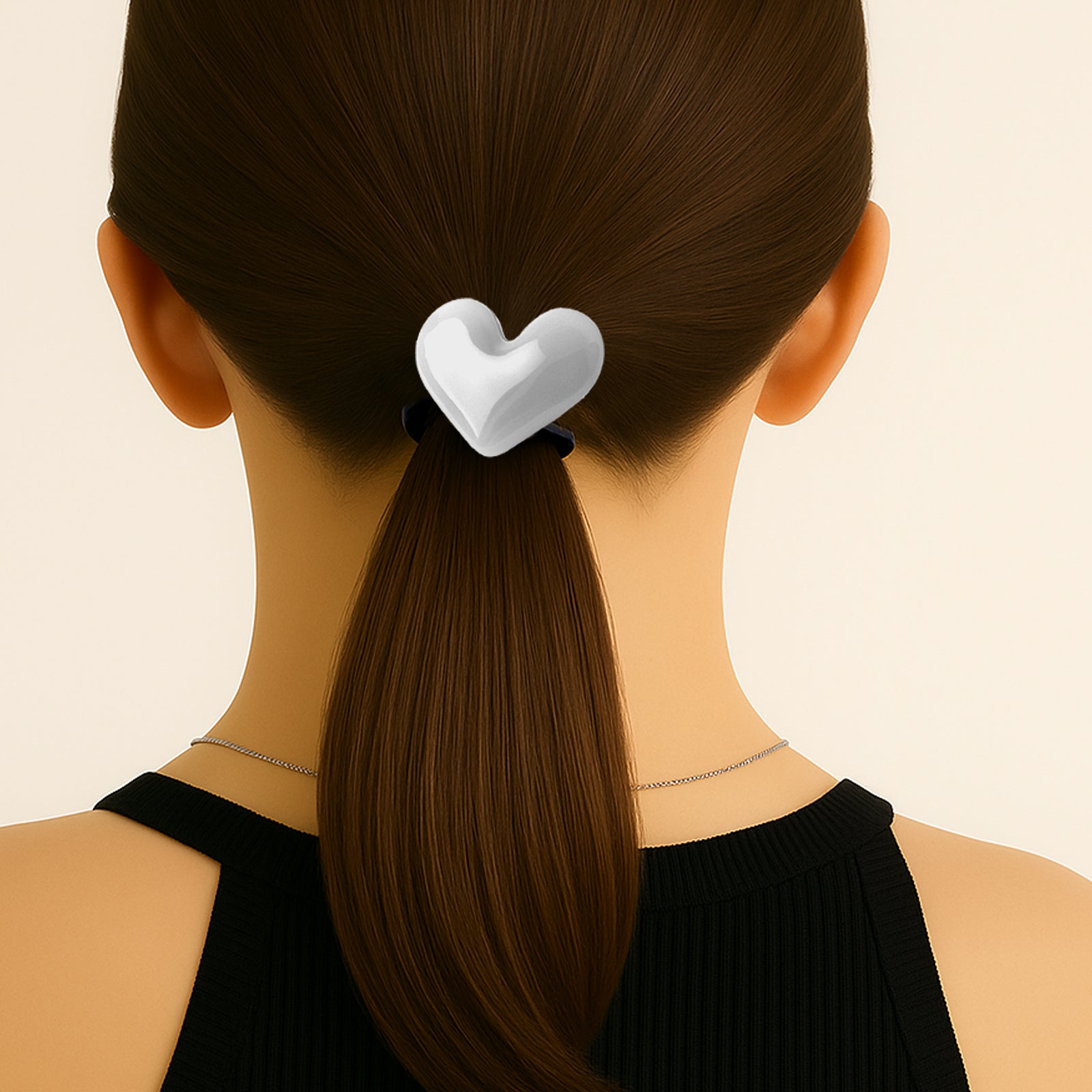 Tel un éclat de tendresse au creux de la chevelure, cet élastique révèle un cœur cristallin nacré à la brillance feutrée. Son fini perlé capte la lumière avec douceur, distillant une aura poétique et contemporaine, un symbole de délicatesse assumée dans chaque geste capillaire.