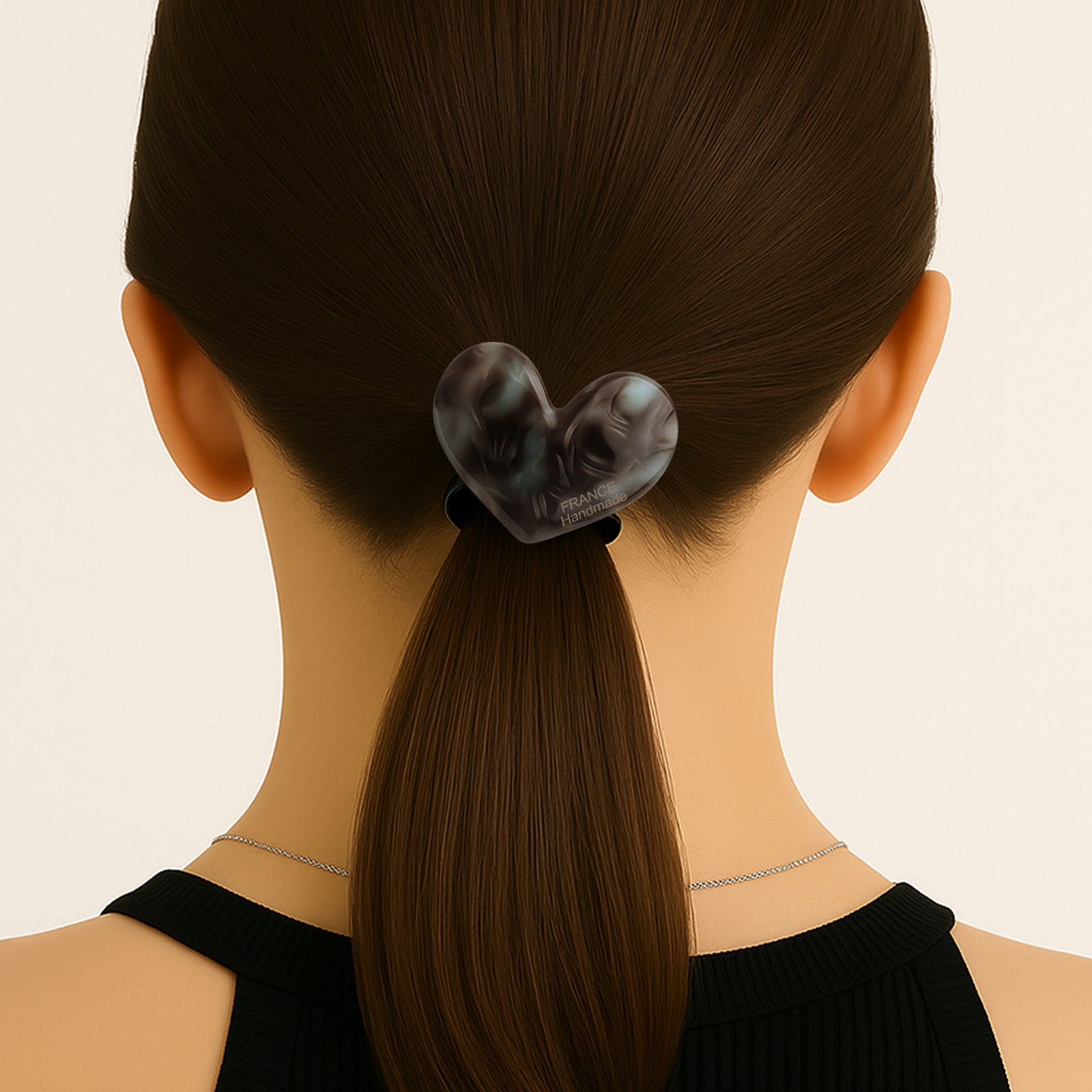 Tel un éclat de tendresse au creux de la chevelure, cet élastique révèle un cœur cristallin nacré à la brillance feutrée. Son fini perlé capte la lumière avec douceur, distillant une aura poétique et contemporaine, un symbole de délicatesse assumée dans chaque geste capillaire.