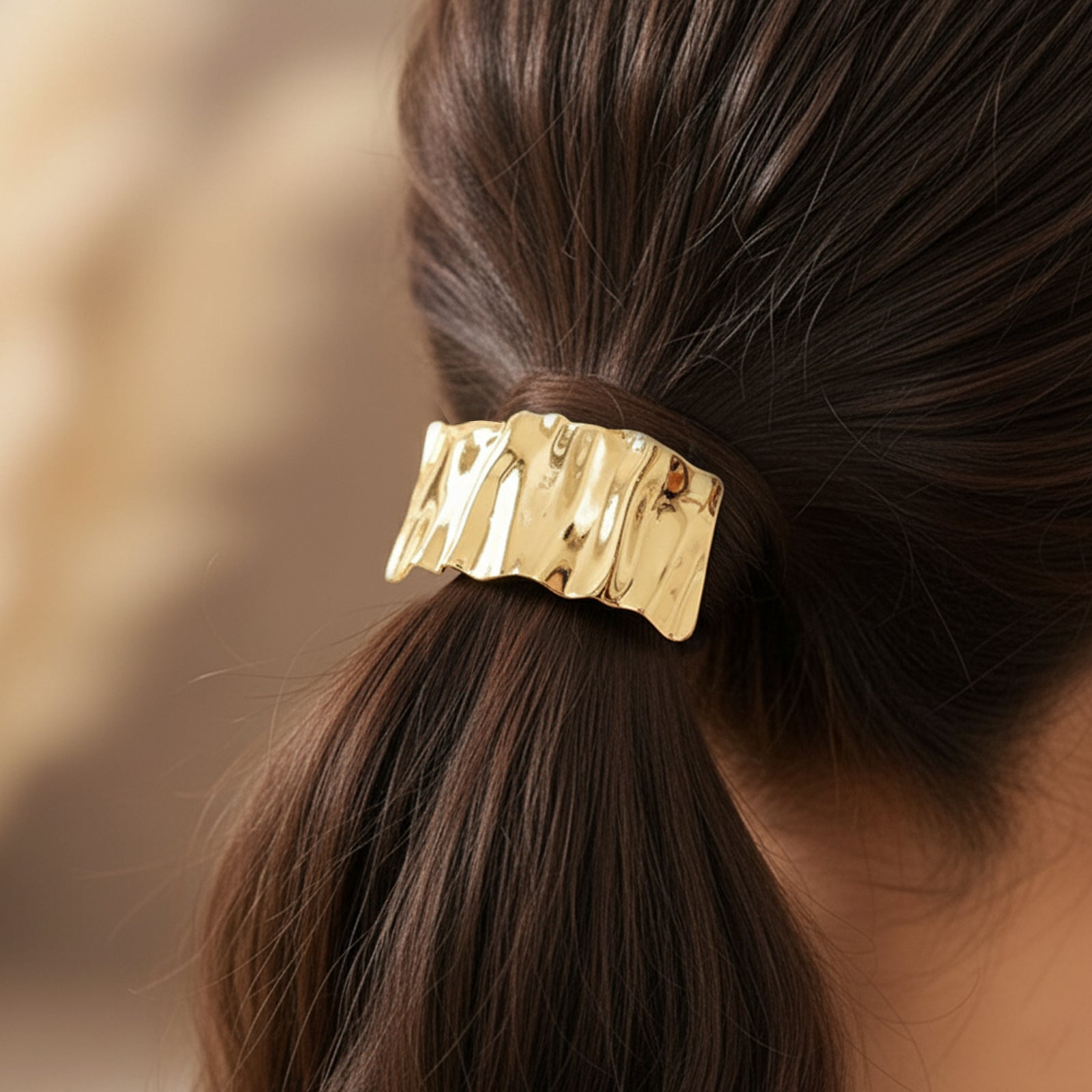 L’Élastique Monica, c’est le petit détail doré qui illumine les cheveux sans effort. Avec sa bande texturée, il apporte un joli relief et une touche chic même aux coiffures les plus simples.