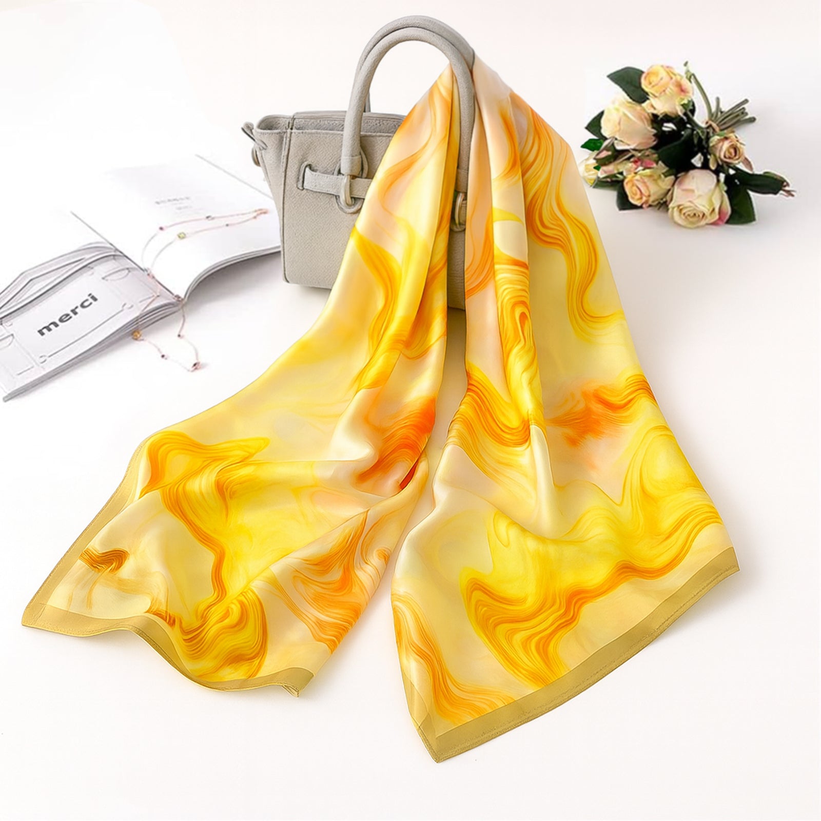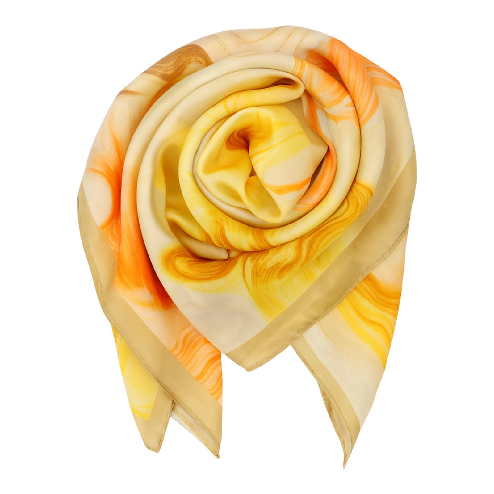 Foulard carré toucher soie Tourbillon d'ocre 70x70cm