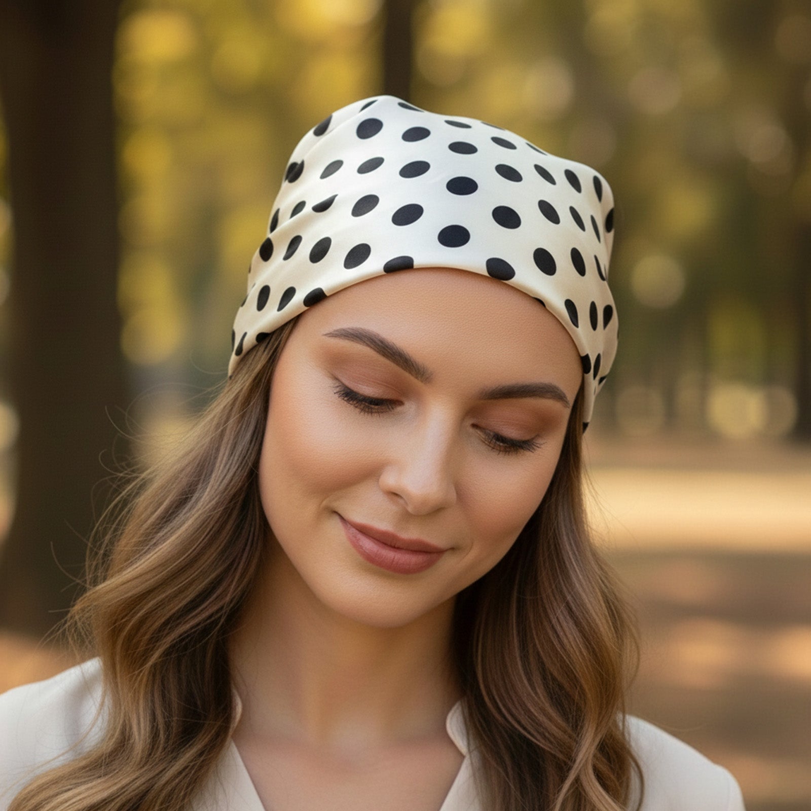 Ce foulard carré Ébène à pois vintage joue sur l’élégance graphique et l’intemporalité. Le fond sombre met en valeur un motif à pois au charme rétro, offrant un équilibre subtil entre sobriété et caractère. Le dessin, net et rythmé, apporte une touche raffinée sans jamais en faire trop.