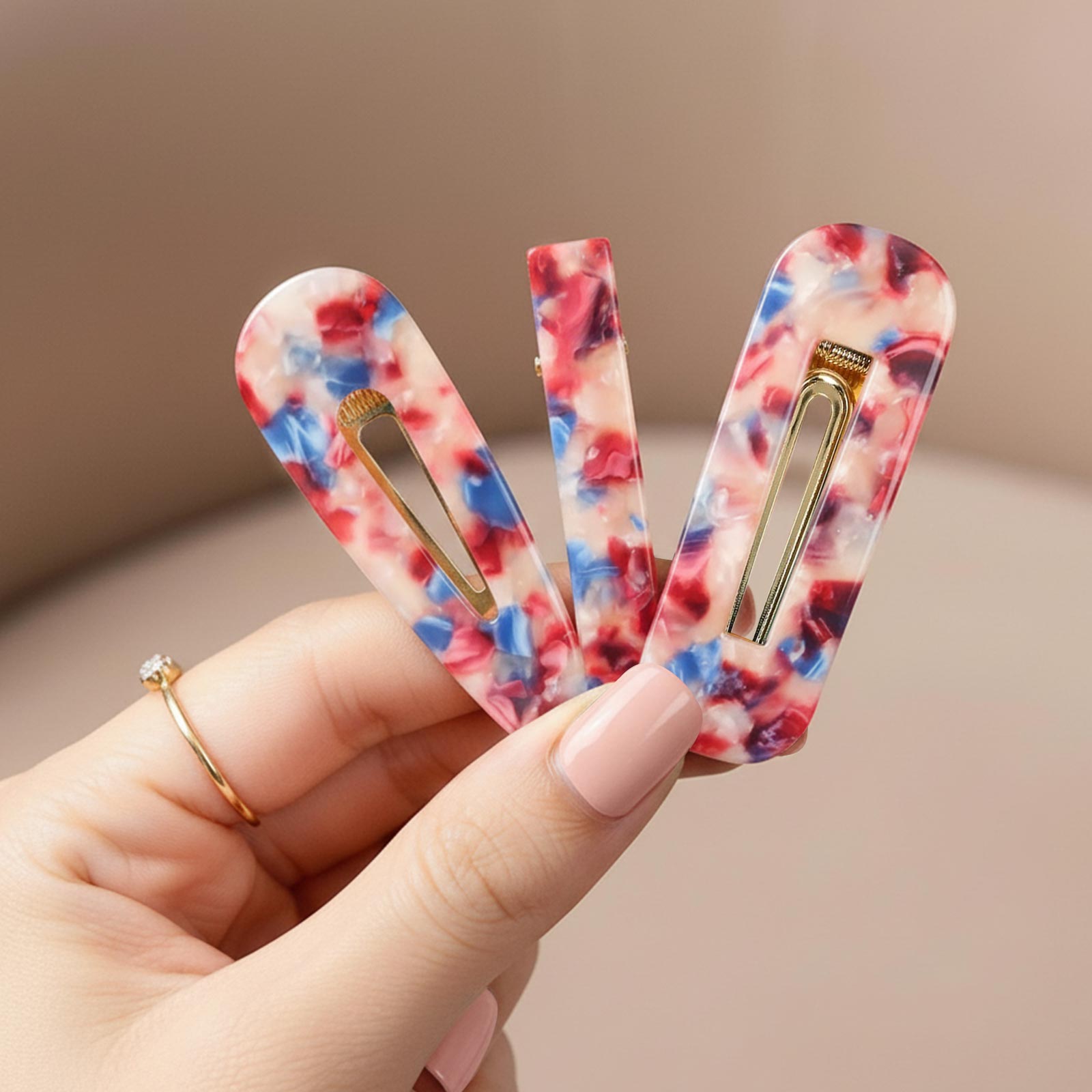 Lot de 3 Pinces Plates Atlantis en Résine Marbrée