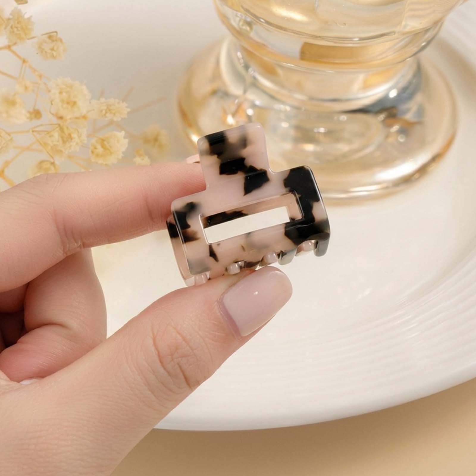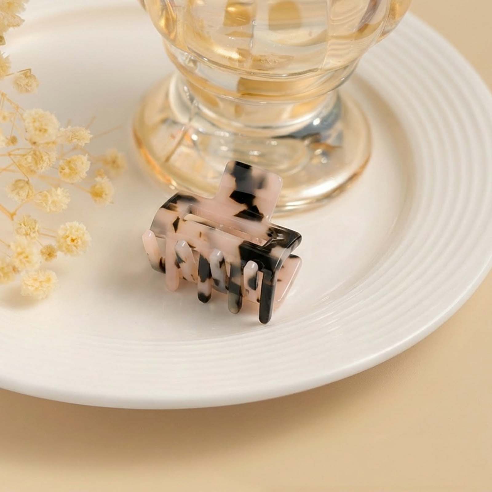 Cette mini pince cheveux affirme son style avec un motif léopard dans des nuances beige et brun profond. Son contraste subtil et son effet légèrement translucide lui donnent une allure rétro pleine de caractère.