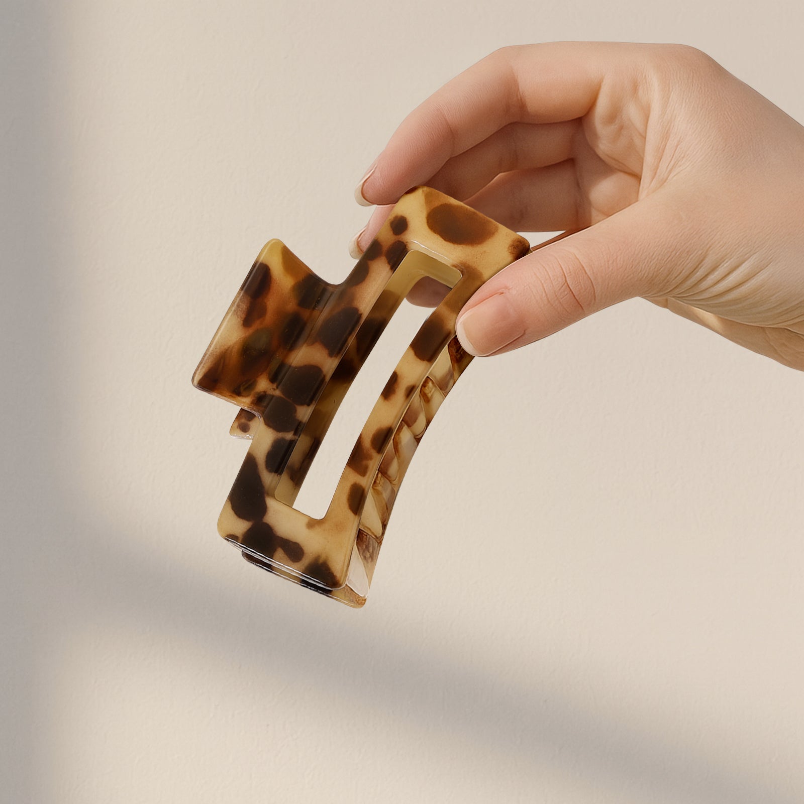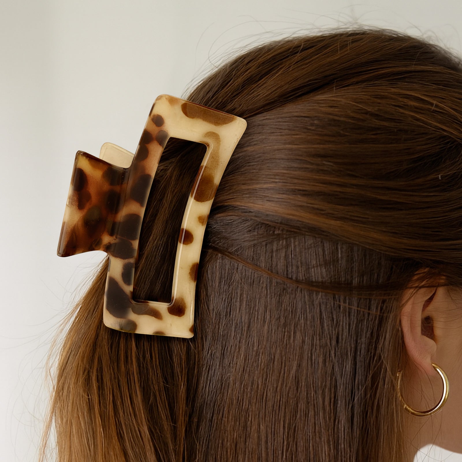 Un éclat d’ambre dans les cheveux. La Pince à Griffes Amber Mood capture la lumière dorée des fins d’après-midi, avec son motif écaille aux nuances de brun, miel et caramel. Sa forme rectangulaire et ses dents solides assurent une tenue confortable et élégante, du chignon flou au demi-attache rapide.