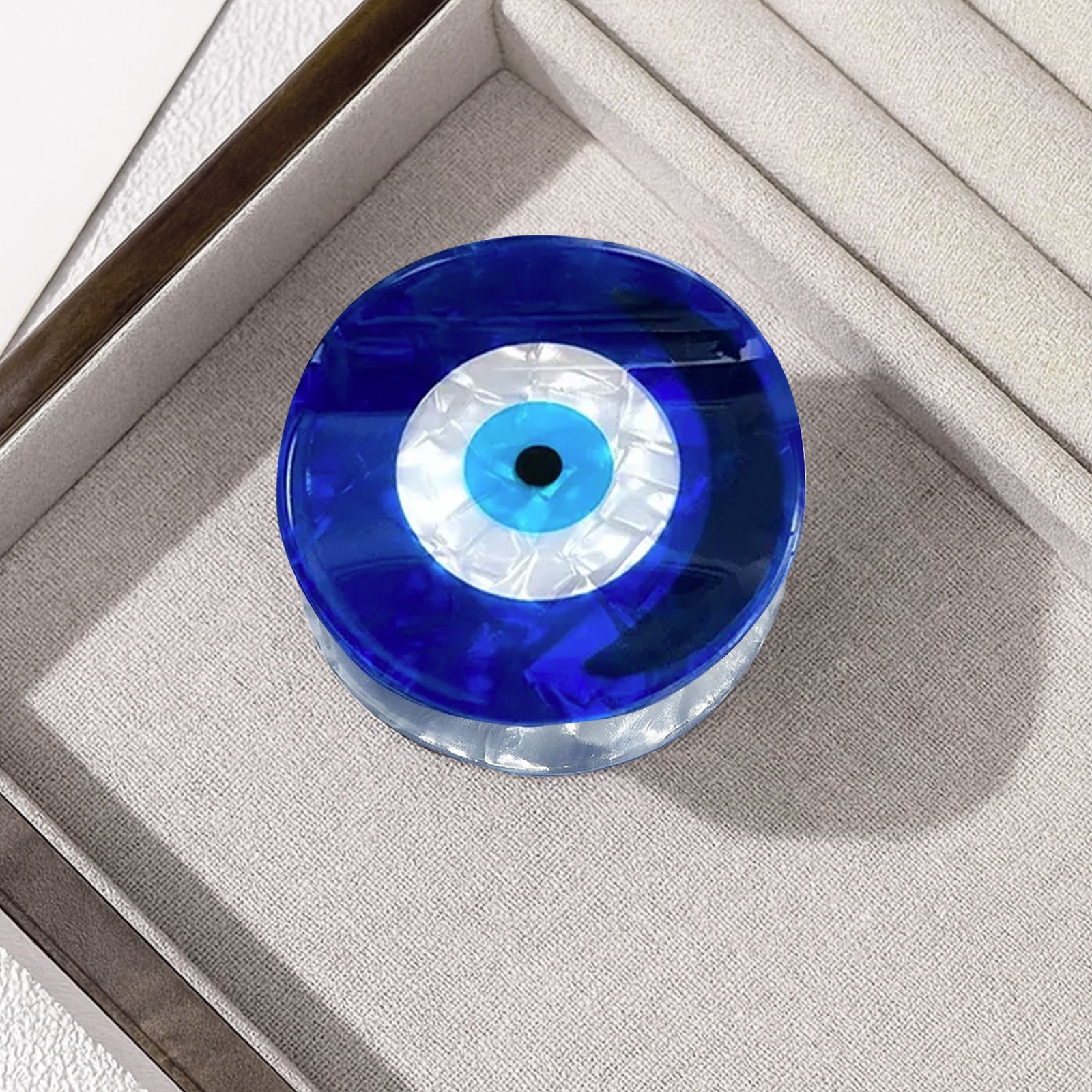 La Pince Cheveux Mirage Deep Blue Eye joue la carte du mystique avec un design inspiré du célèbre œil protecteur. Son motif bleu profond, entouré de détails nacrés et symétriques, attire le regard tout en évoquant calme, intuition et énergie positive. C’est le genre d’accessoire qui donne du caractère à une coiffure sans en faire trop.