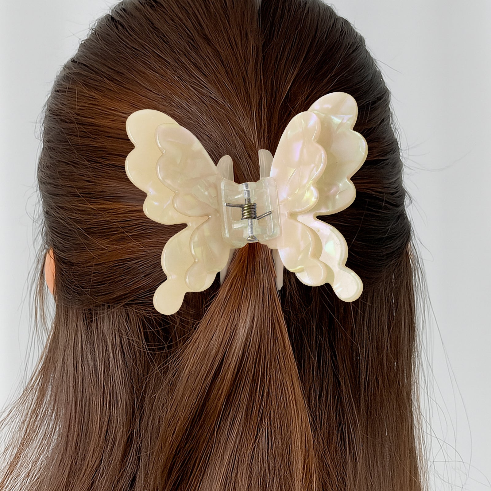 Un souffle de lumière dans les cheveux. La Pince Cheveux Papillon Lilac Haze Jaune évoque les premières lueurs d’un matin brumeux, où le lilas rencontre l’or doux du soleil. Sa finition nacrée irisée capte la lumière avec délicatesse, révélant des reflets pastel qui dansent à chaque mouvement.