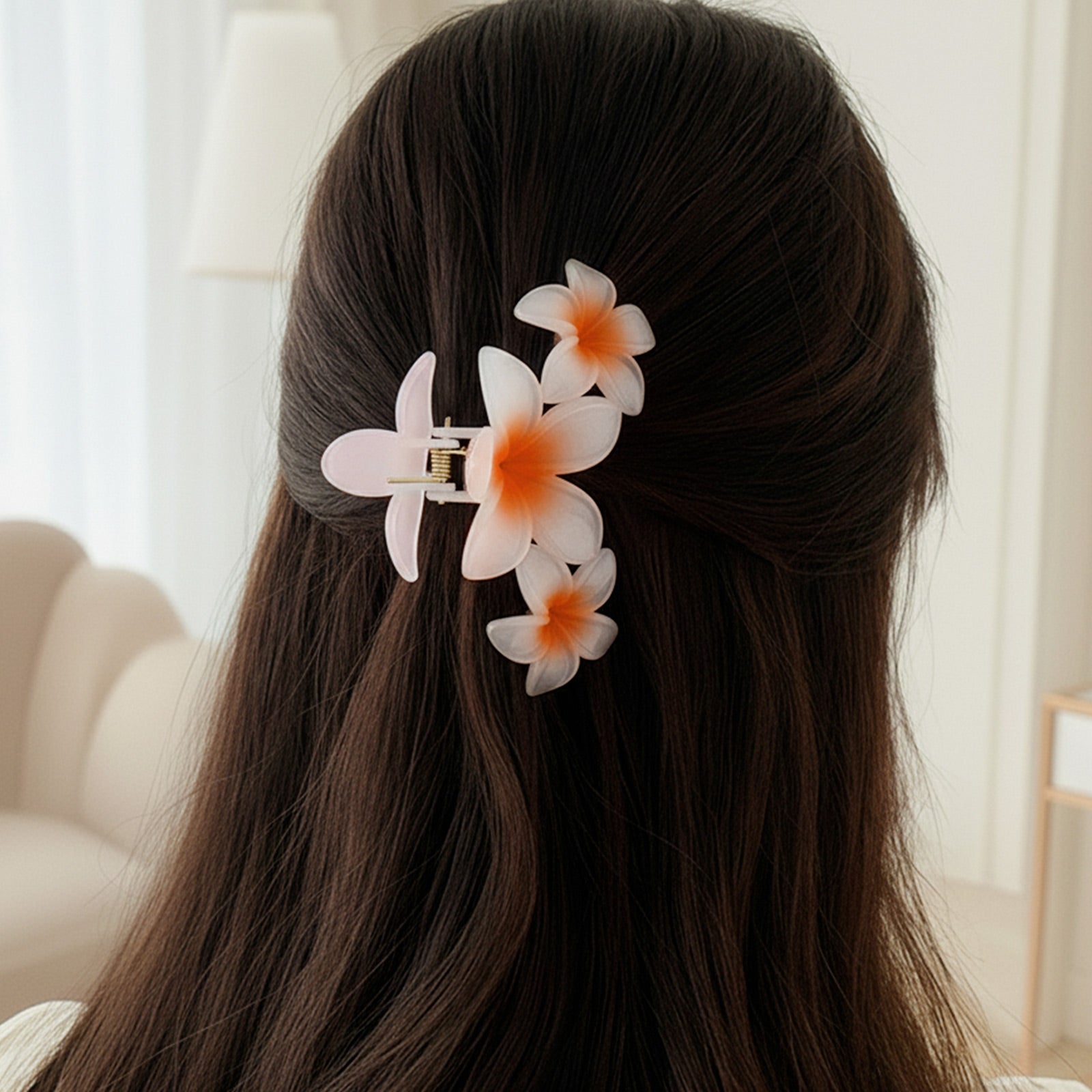 Pince Cheveux Perle de Plumeria Orange Foncé
