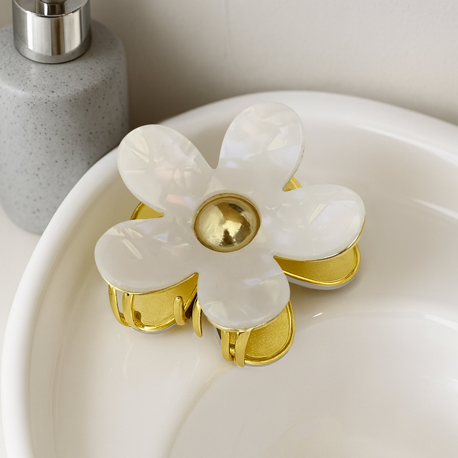 Élégante et lumineuse, la Pince Cheveux Smoky Blossom Blanc Nacré sublime toutes tes coiffures avec raffinement. Son design floral associe des pétales blancs au fini nacré à un cœur doré scintillant, pour un rendu chic et délicat.