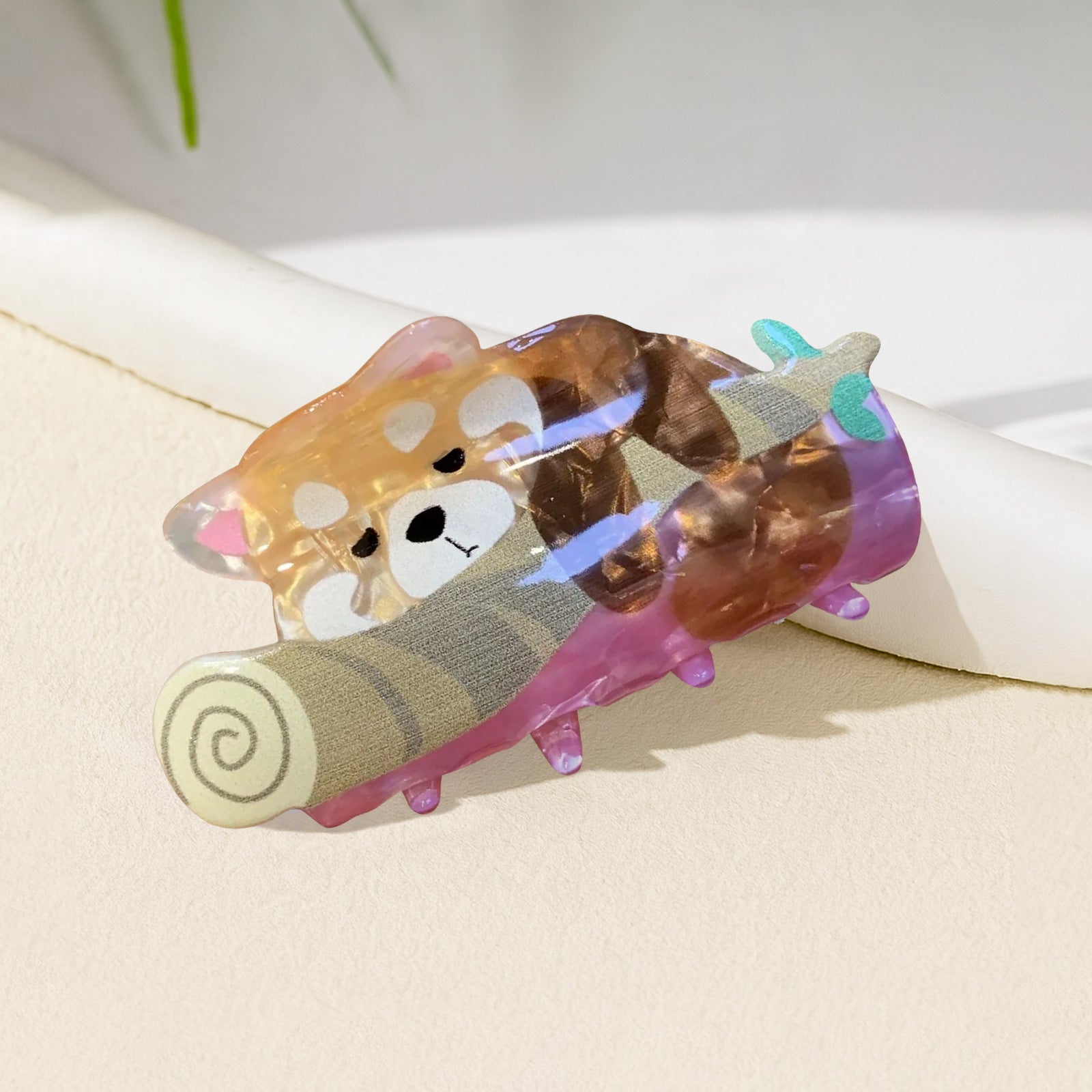 Craque pour la Pince Cheveux Tropicool Bamboo Hiko, inspirée du panda roux, surnommé Hi-ko au Japon, le “renard de feu”. Avec son design mignon et coloré, elle met en scène un adorable panda roux câlinant son bambou.