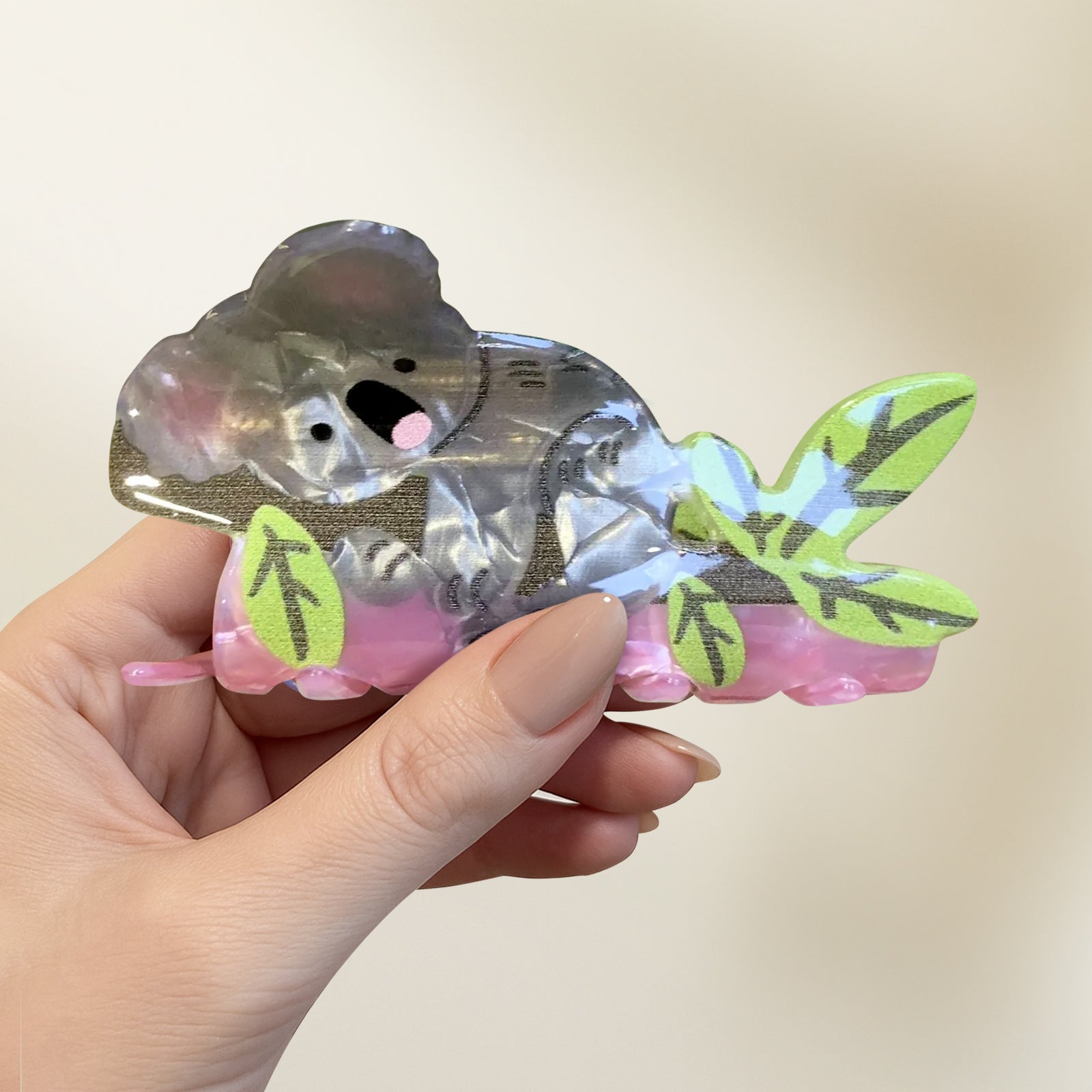 Apporte une touche fun et estivale à tes coiffures avec la Pince Cheveux Tropicool Sweet Koala. Son design coloré met en avant un adorable koala entouré de feuilles tropicales, parfait pour insuffler des good vibes à ton look.