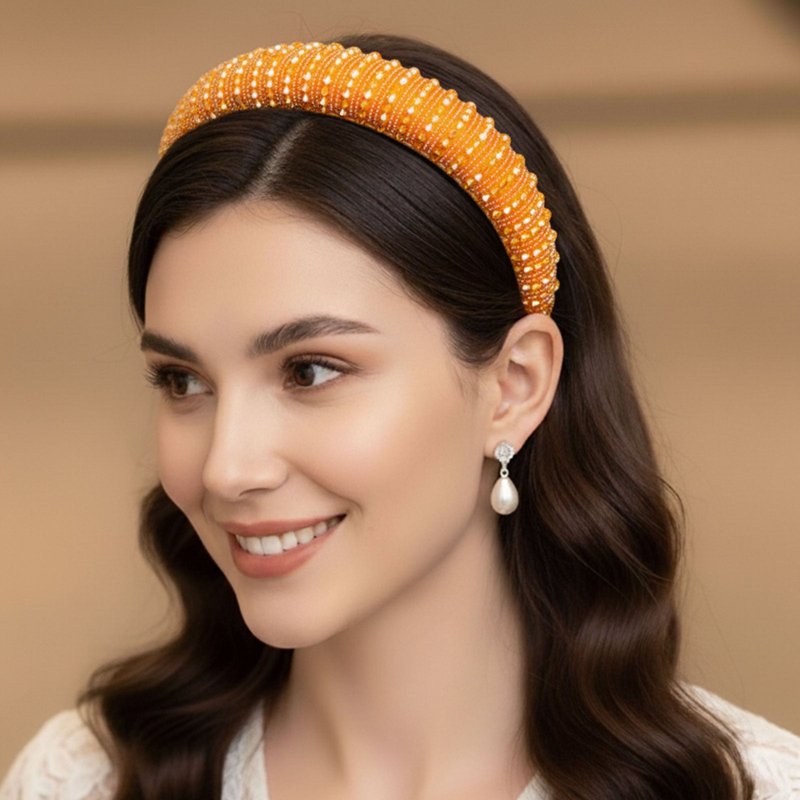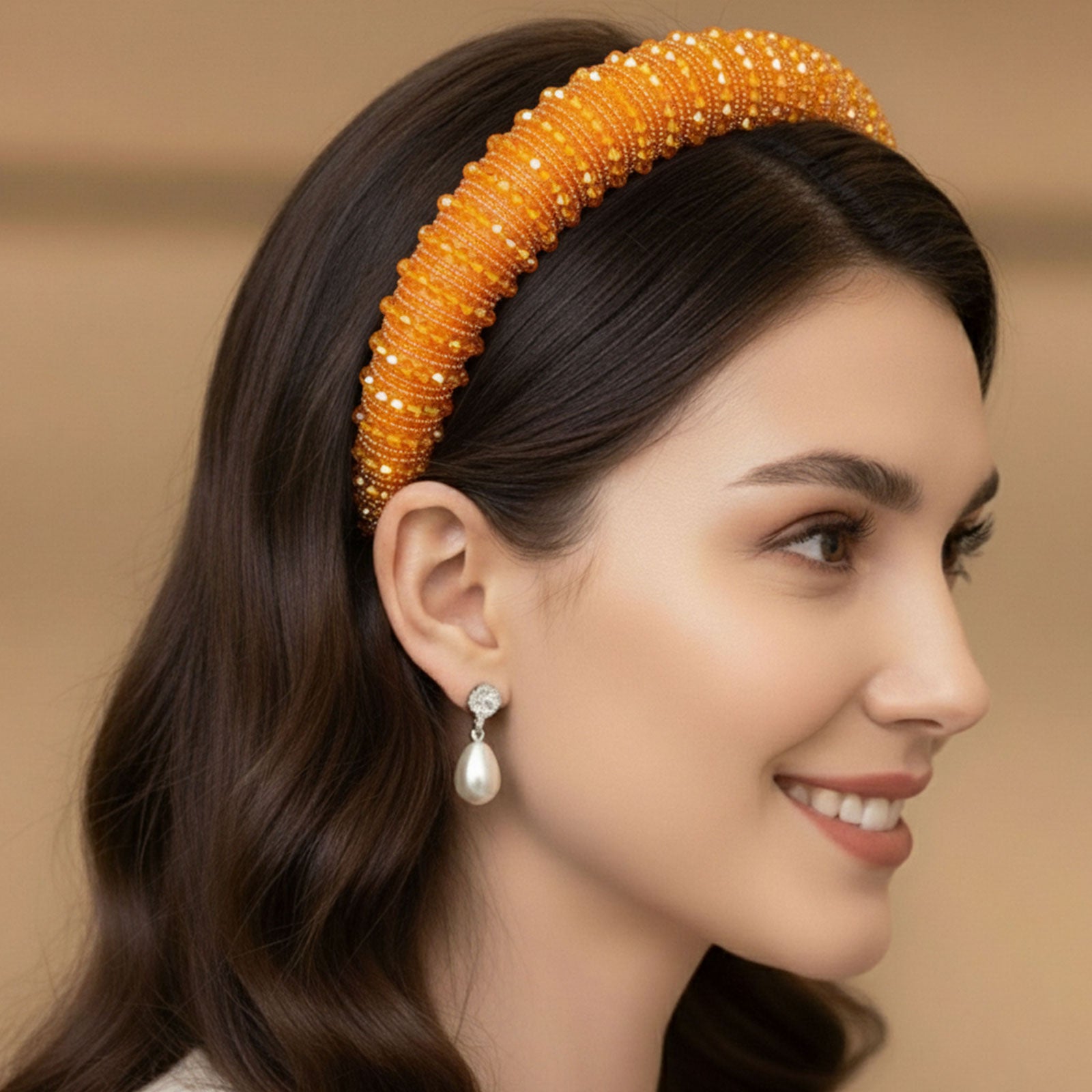 Matière : Base en tissu doux, ornée de perles facettées et de séparateurs métalliques raffinés.