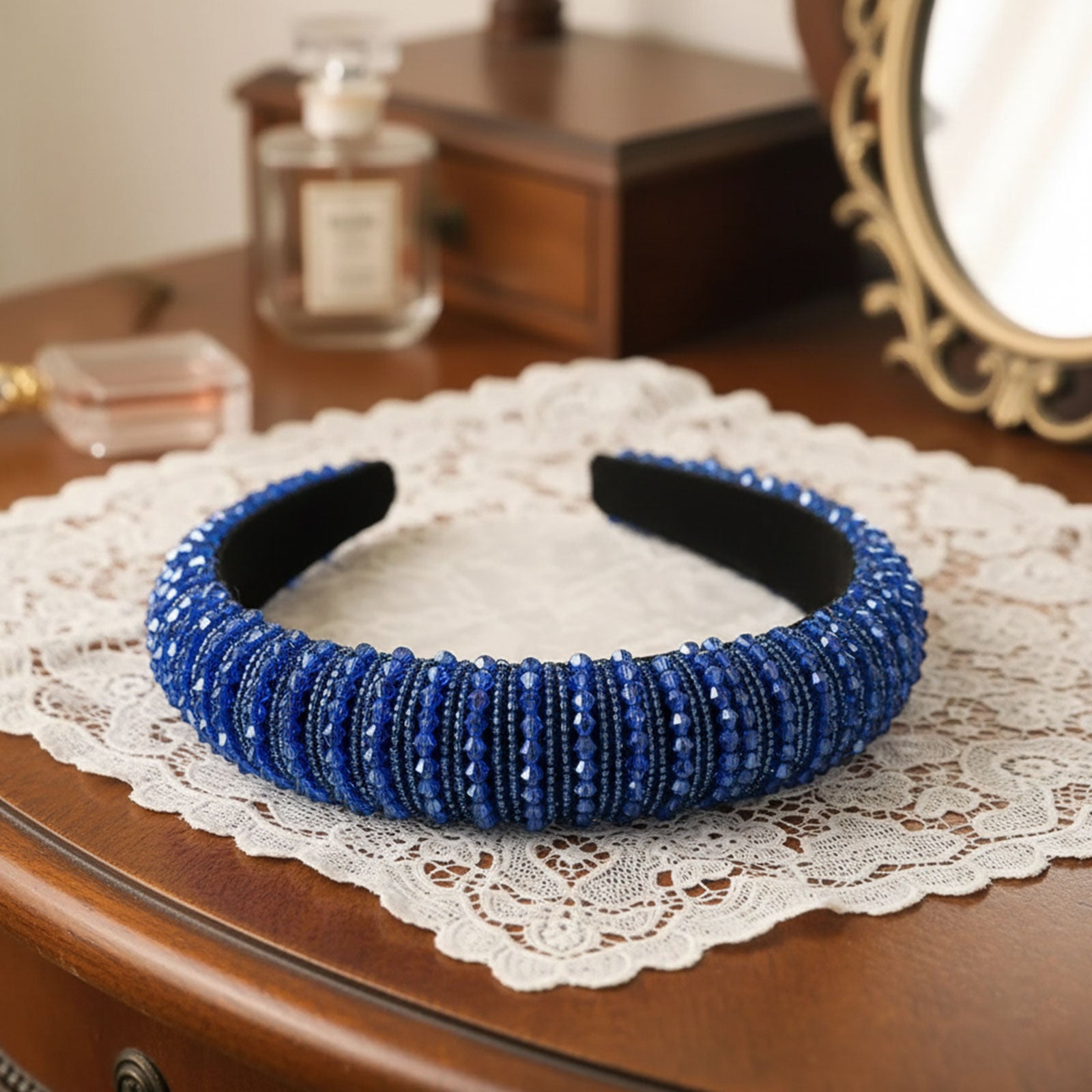 Matière : Base en tissu doux, ornée de perles facettées et de séparateurs métalliques raffinés