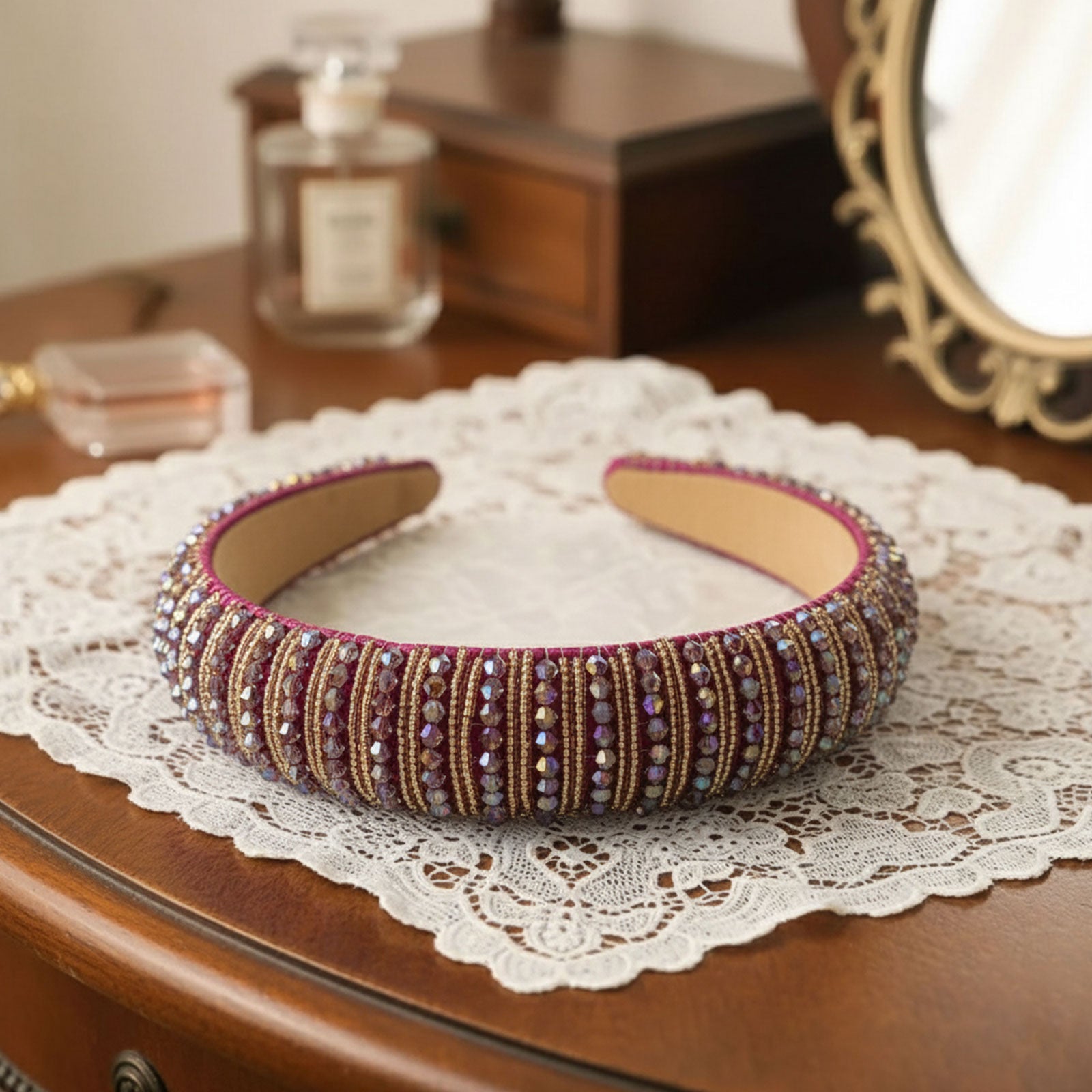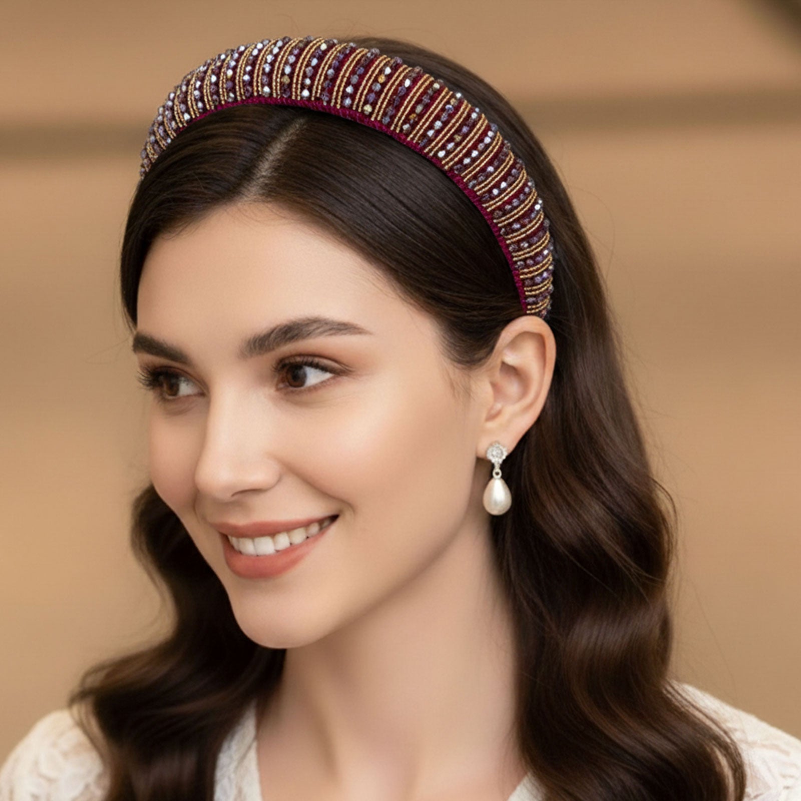 Matière : Base en tissu doux, ornée de perles facettées et de séparateurs métalliques raffinés
