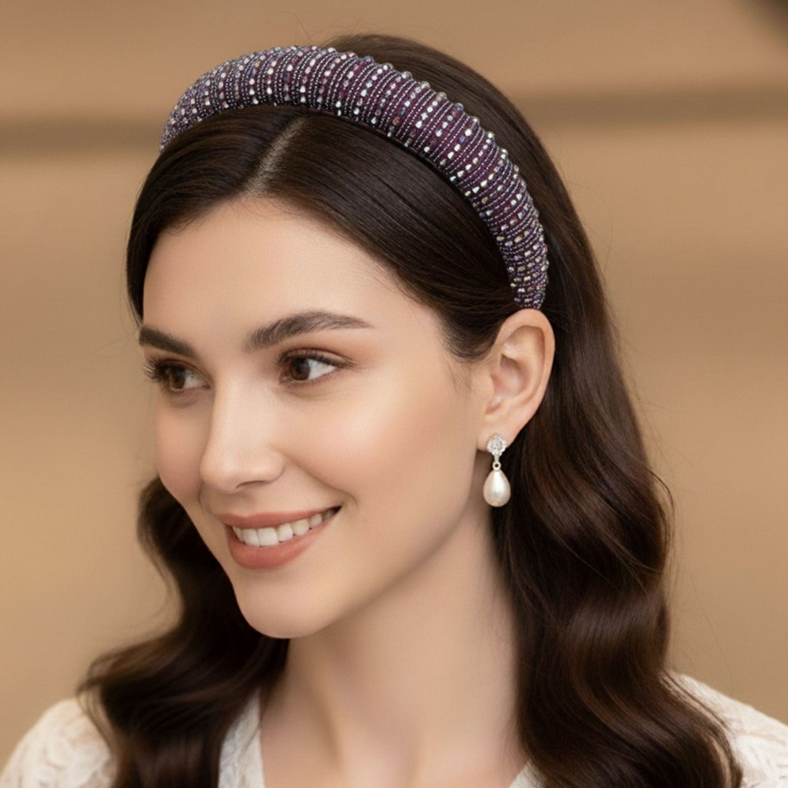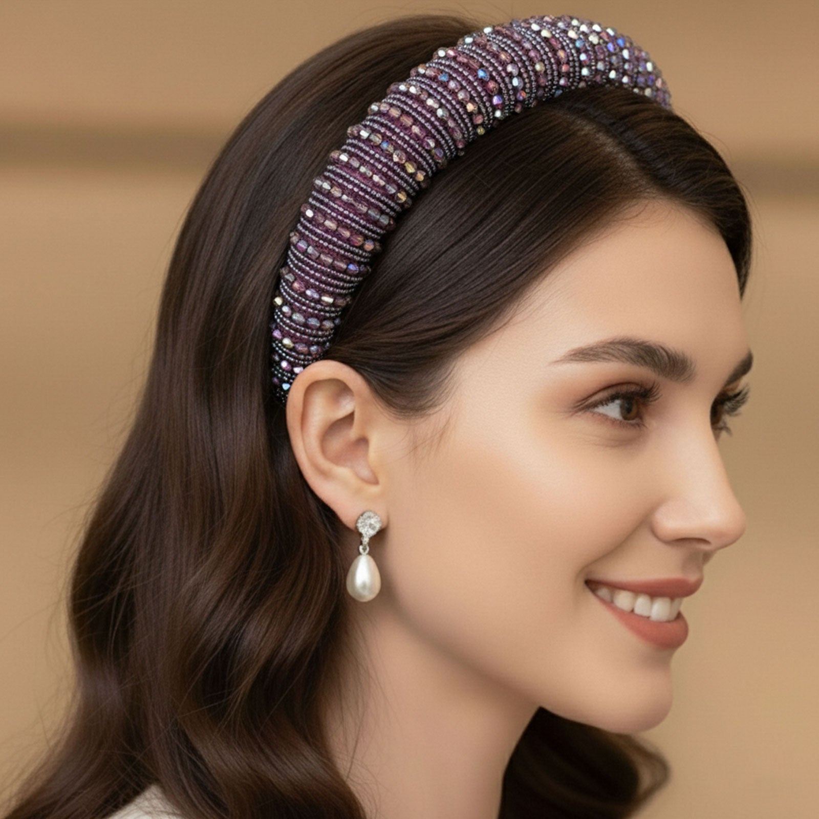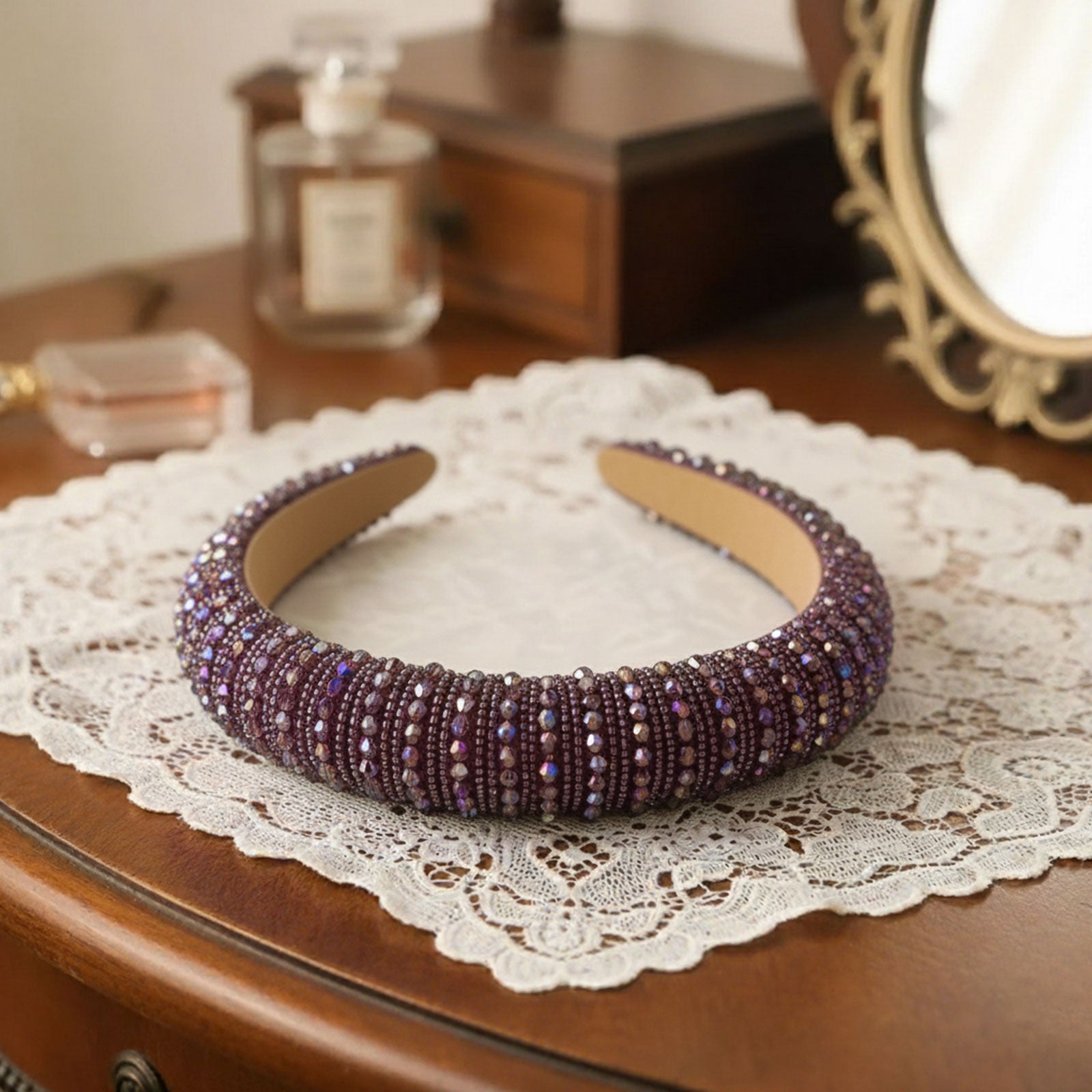 Laissez-vous séduire par l’élégance subtile du Serre-tête Large Angie Prune Cristalline. Orné de cristaux violets et prune aux reflets scintillants, il capte la lumière avec raffinement et ajoute une touche de glamour à toutes vos coiffures.