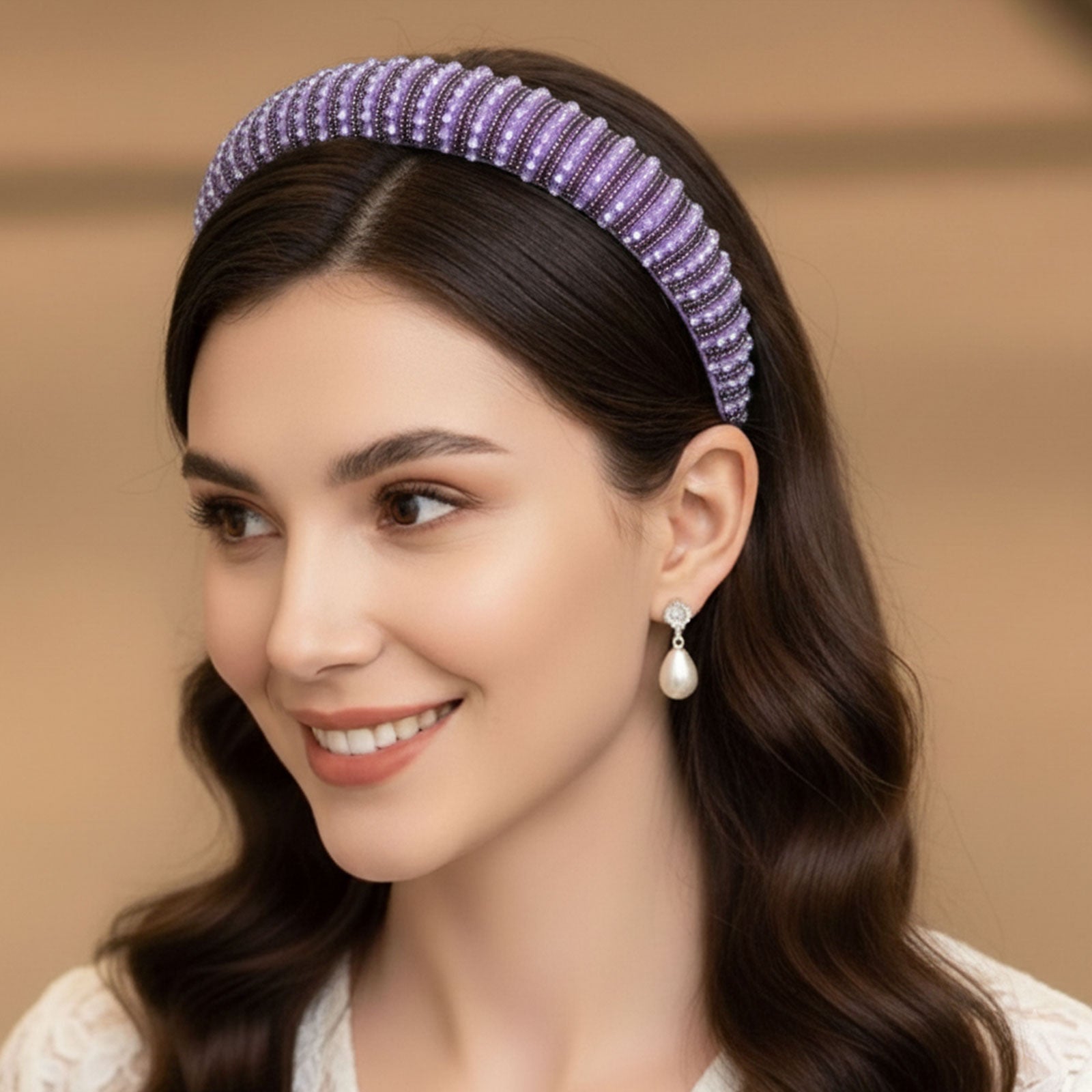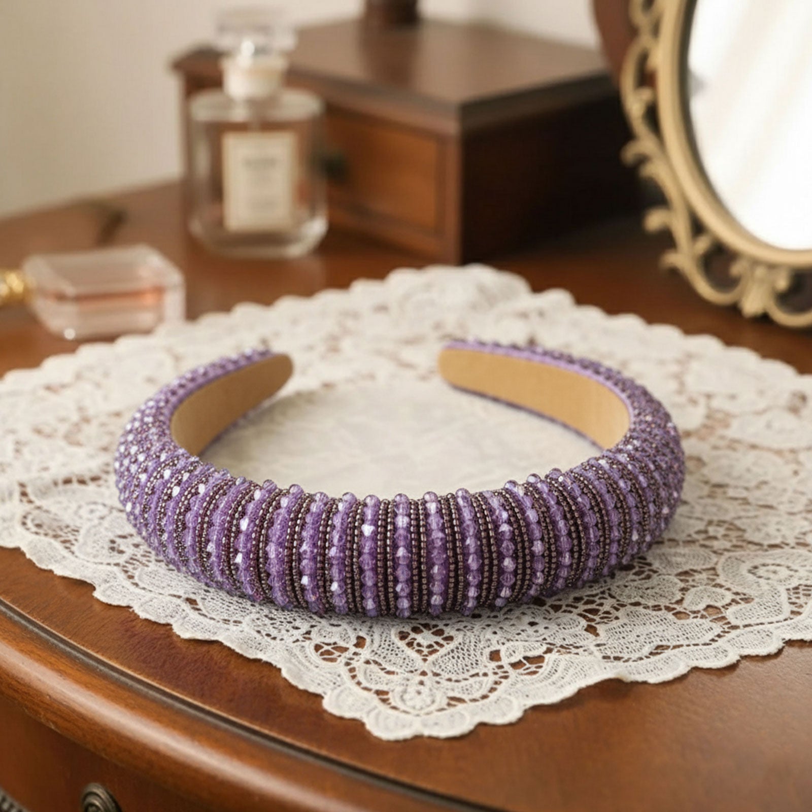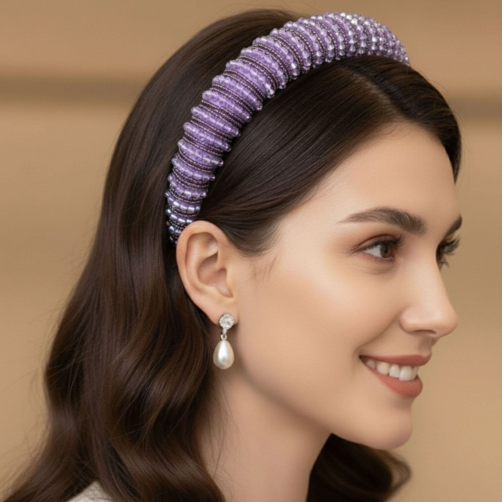 Matière : Base en tissu doux, ornée de perles facettées et de séparateurs métalliques raffinés.