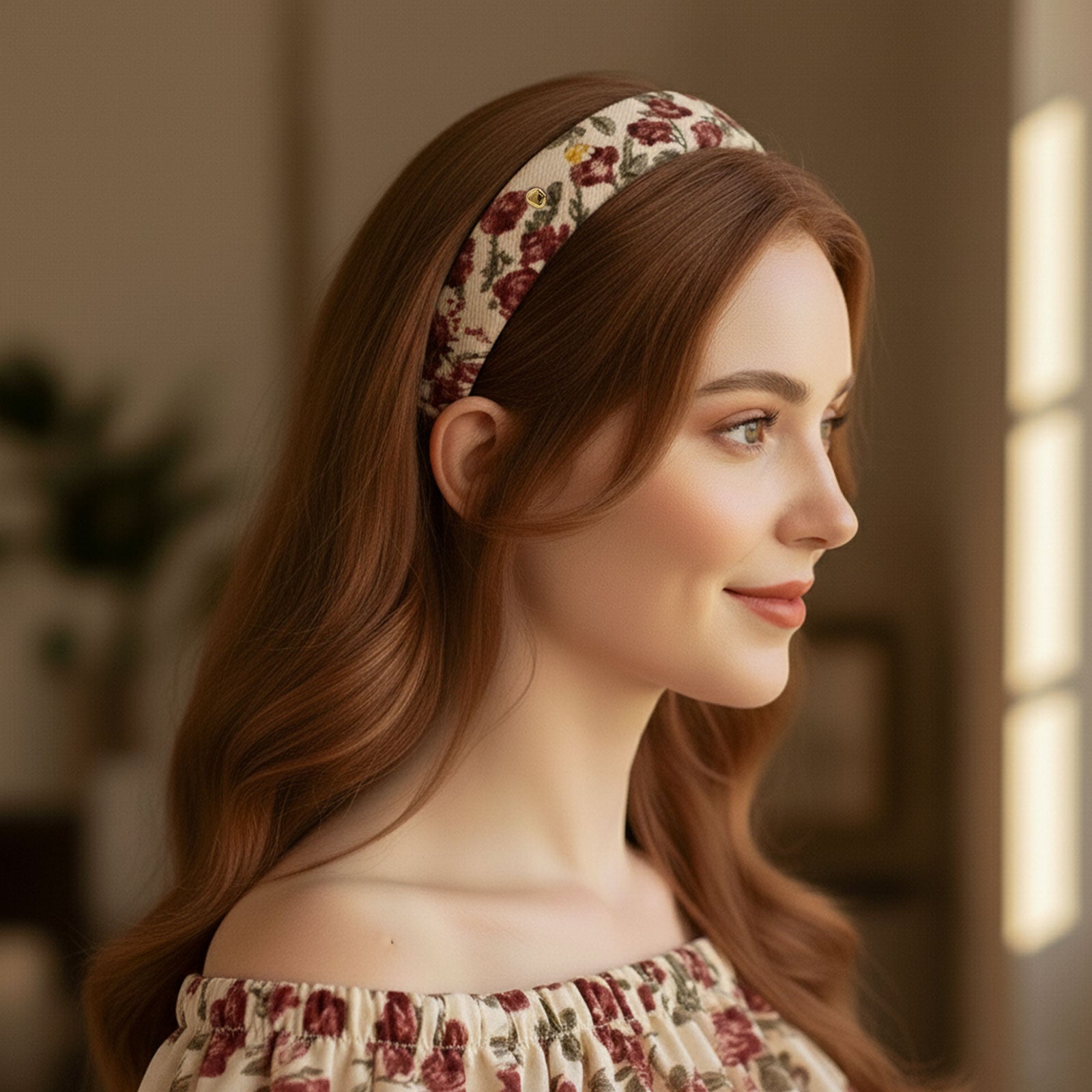 Serre-tête Large Calissa en Tissu Fleuri Blanc