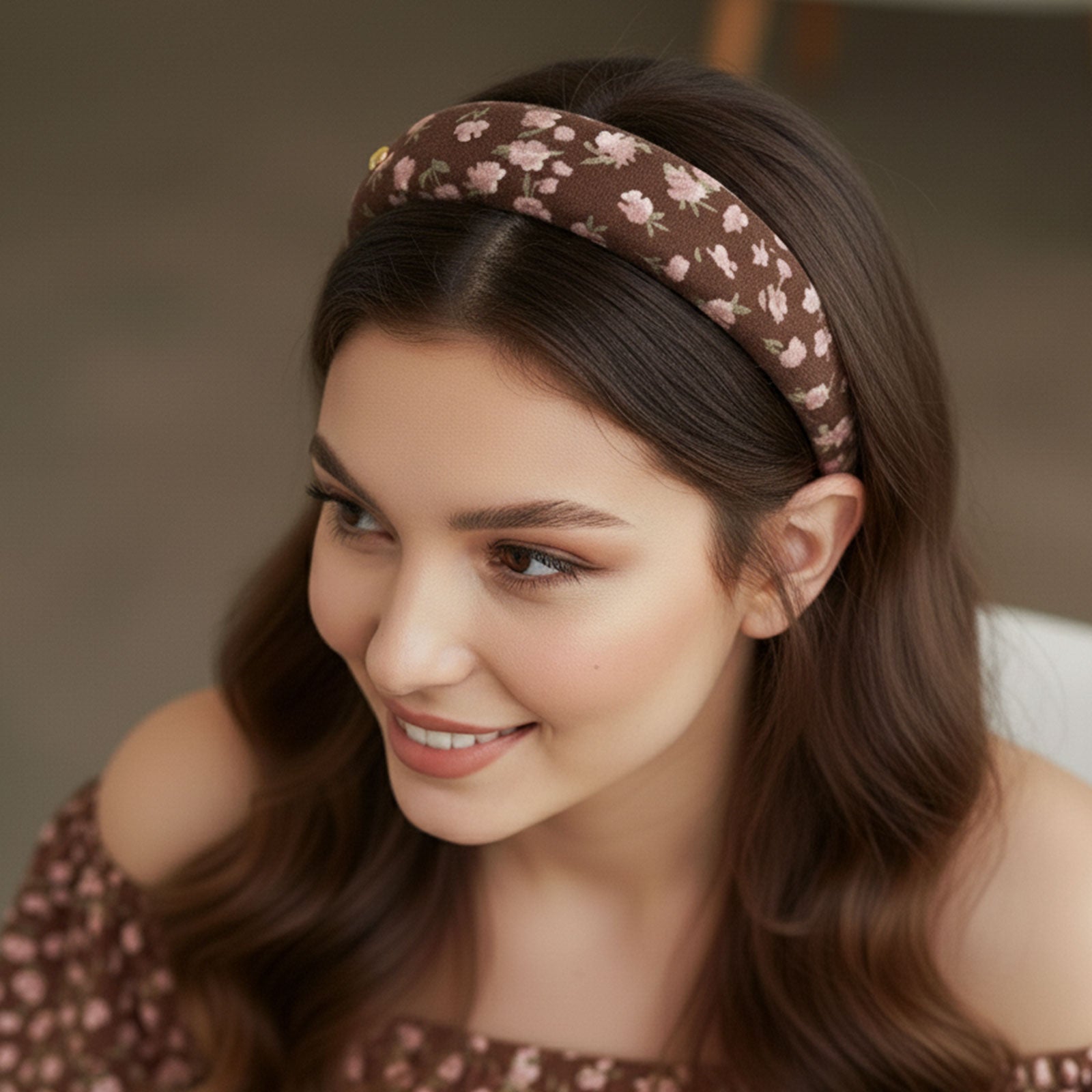 Serre-tête Large Calissa en Tissu Fleuri Marron