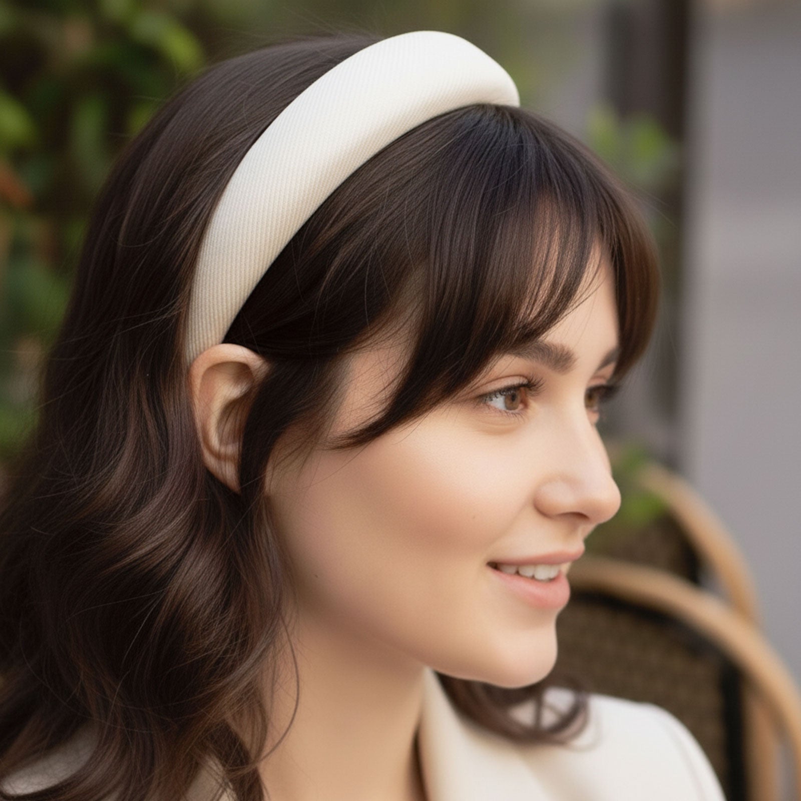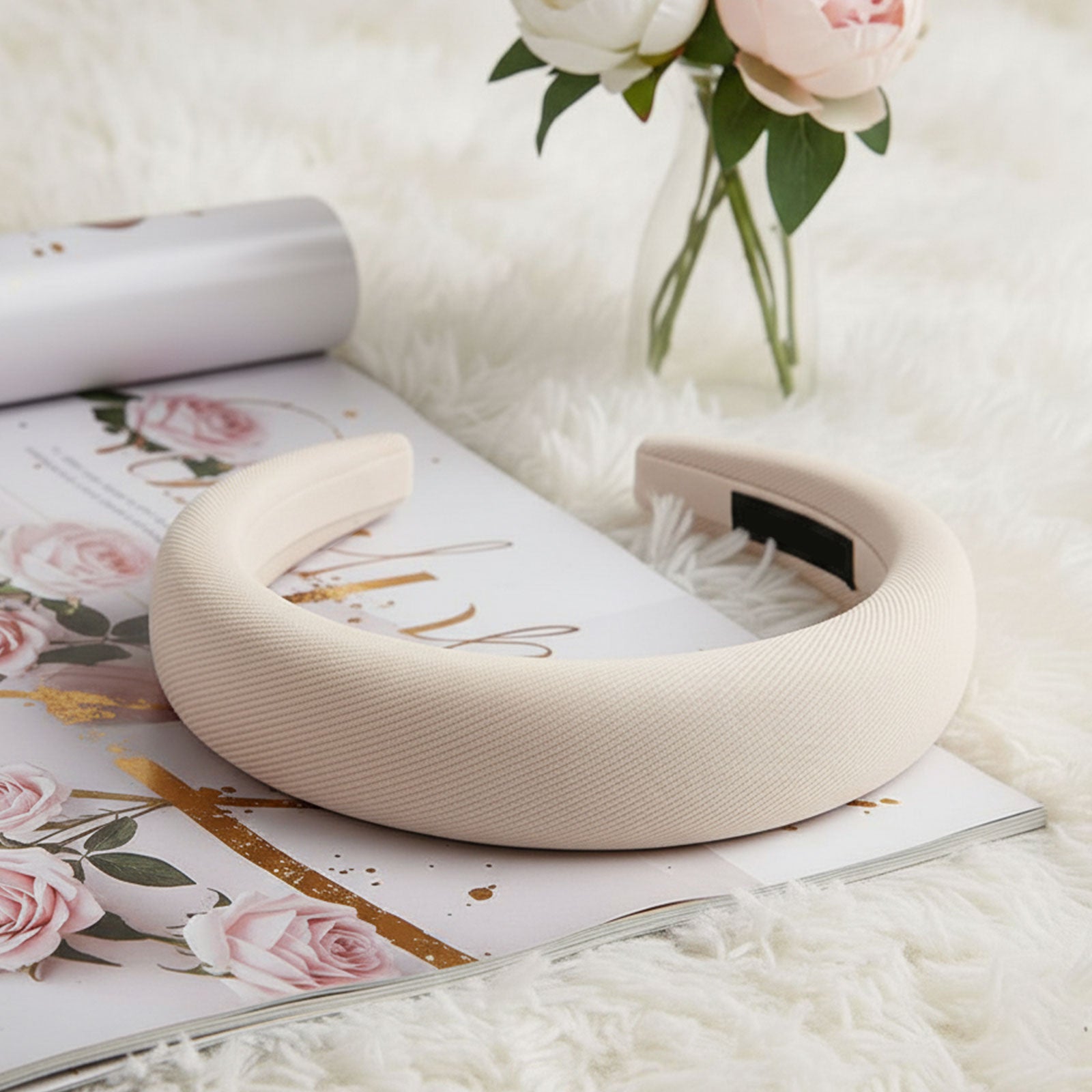 Serre-tête Large Mandie en Tissu Côtelé Ivoire