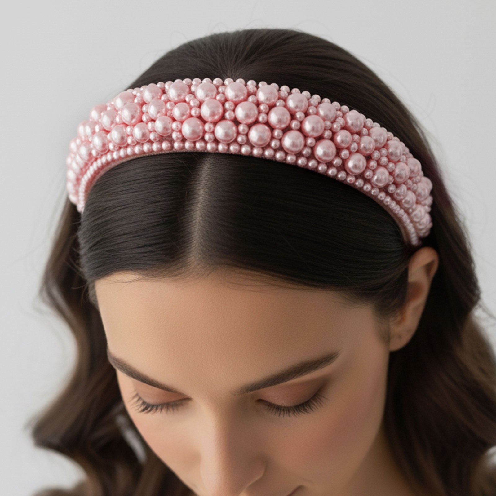 Serre-tête Large Nyssa Couronne de Perles Rose