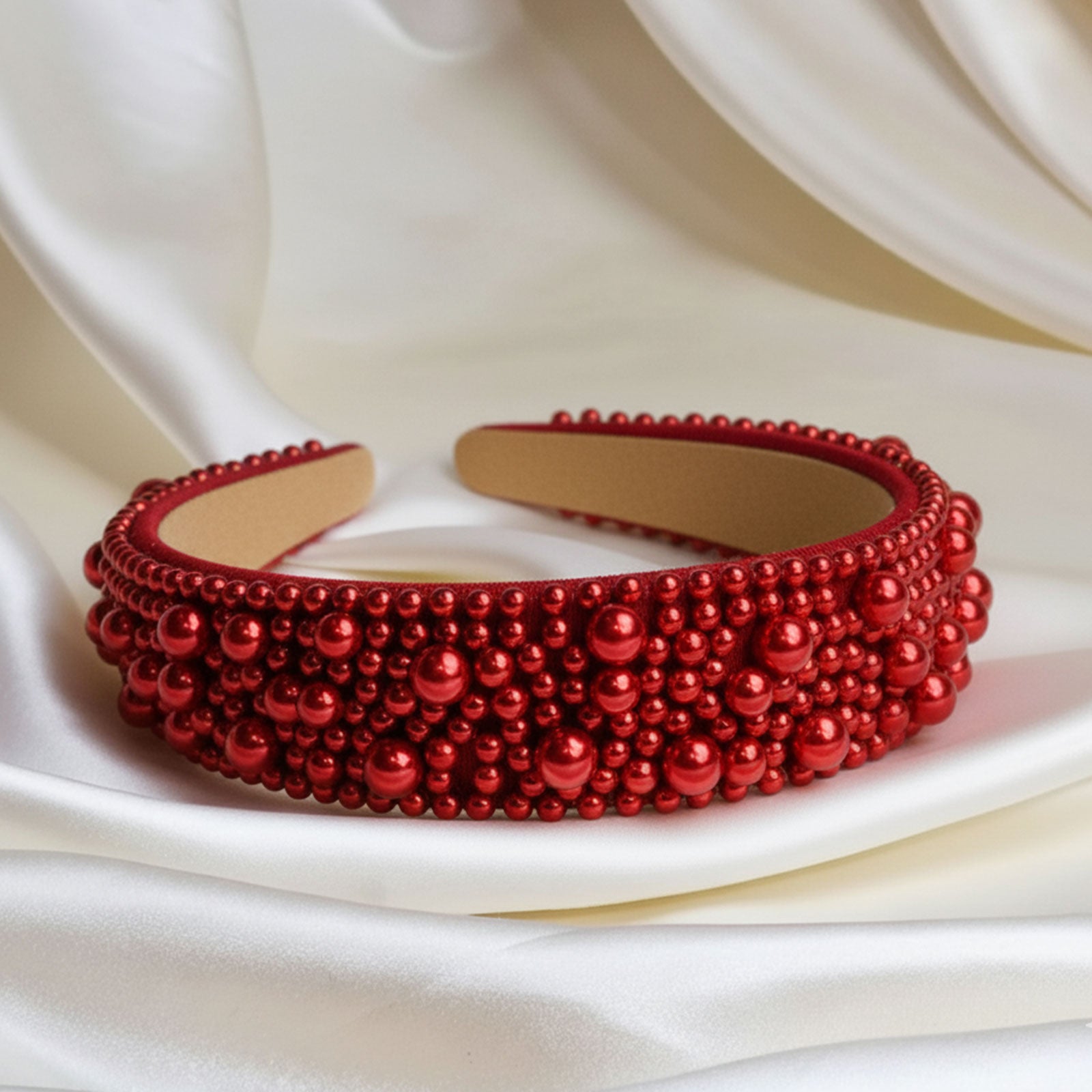 Serre-tête Large Nyssa Couronne de Perles Rouge