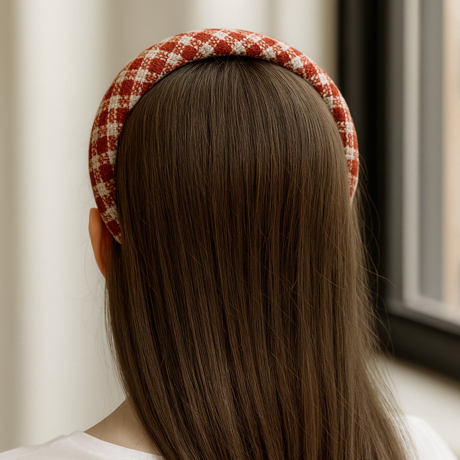 Serre-tête Large Vintage Grid Maisy Rouge Brique