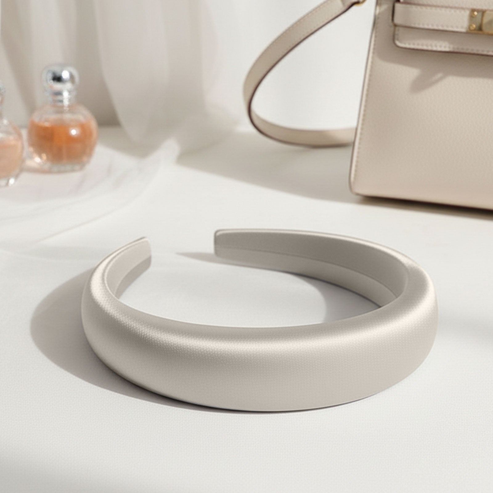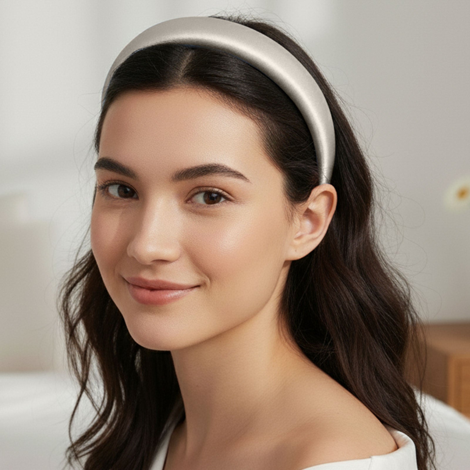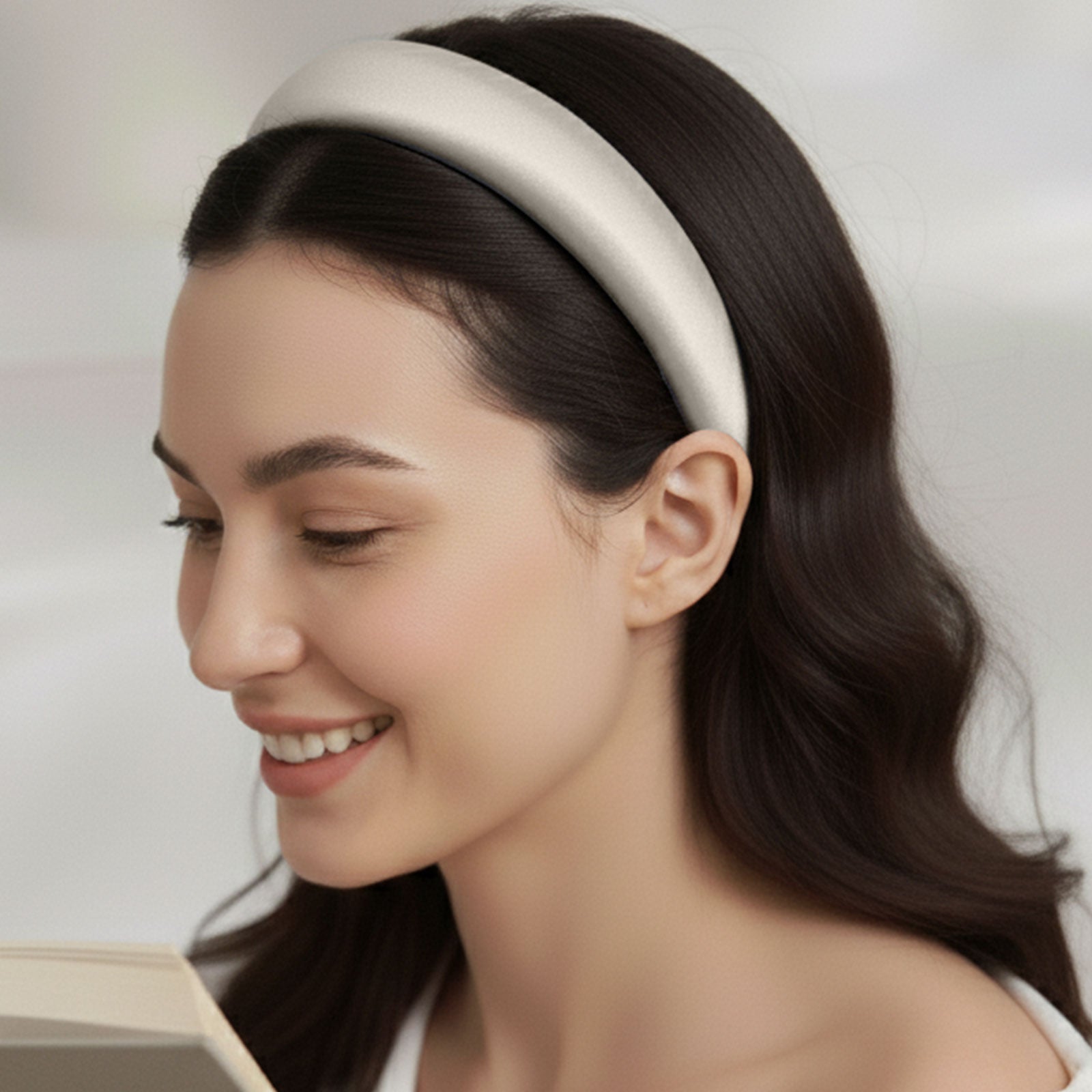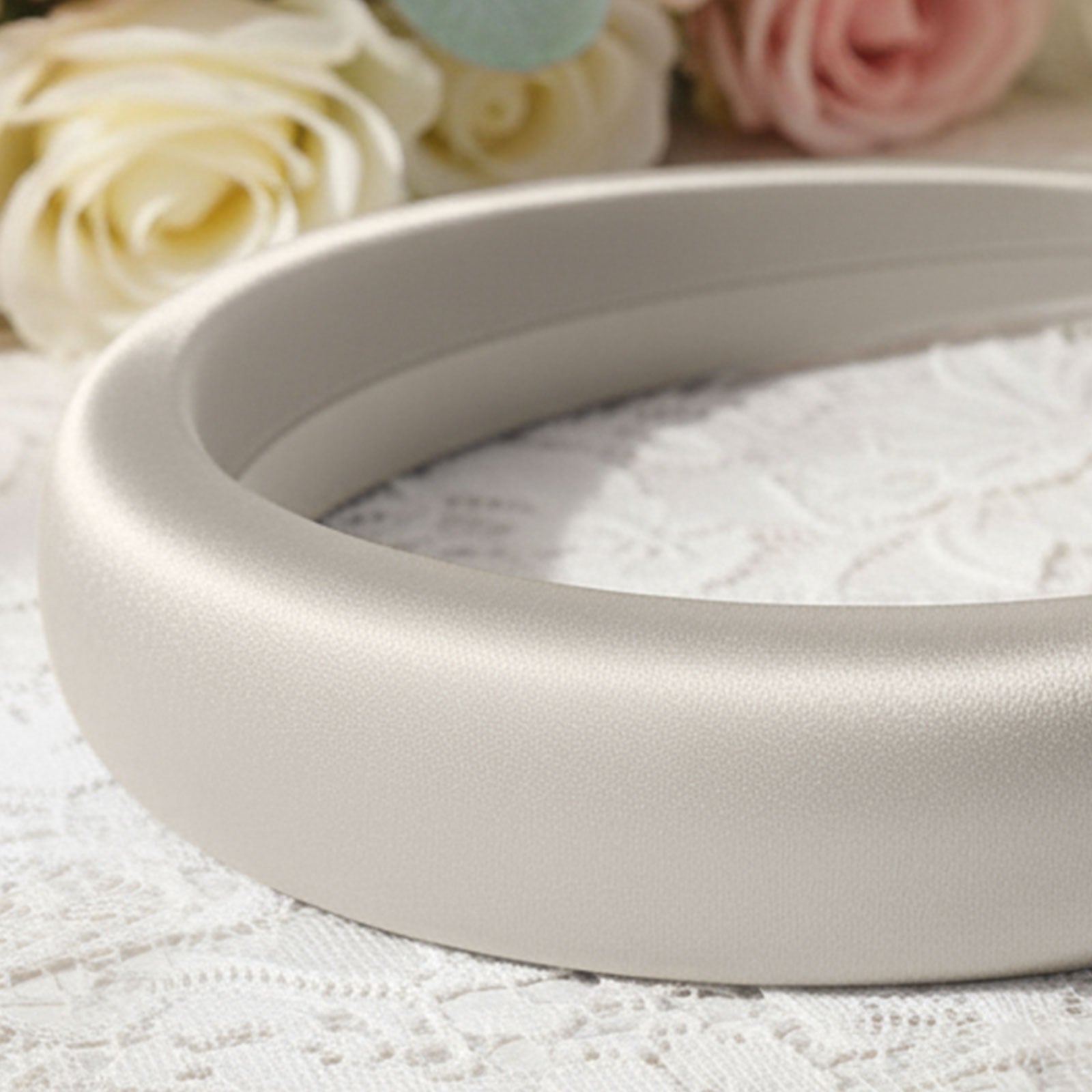 Serre-tête Maureen en Satin Coussiné Blanc Ivoire