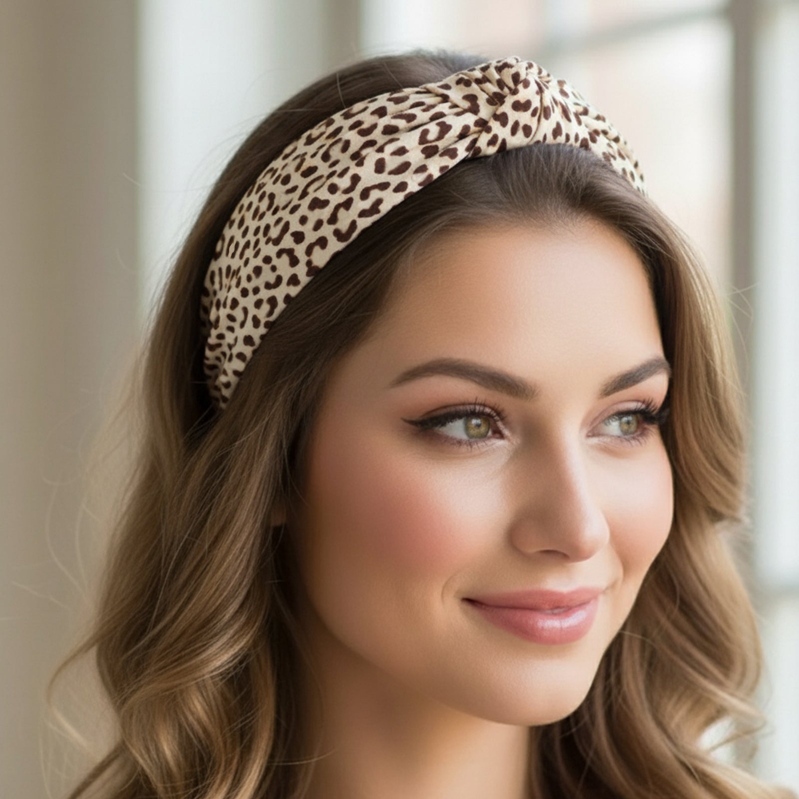 Serre-tête Nœud Coralie Imprimé Léopard Beige